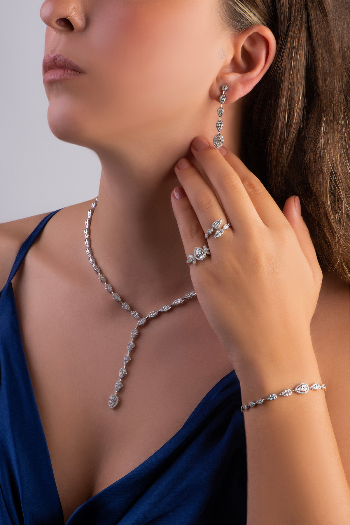 Parlak Baget 18 Ayar Beyaz Altın Kaplama Gümüş Gerdanlık Parlak Baget 18 Ayar Beyaz Altın Kaplama Gümüş Gerdanlık 51425399 42 cm