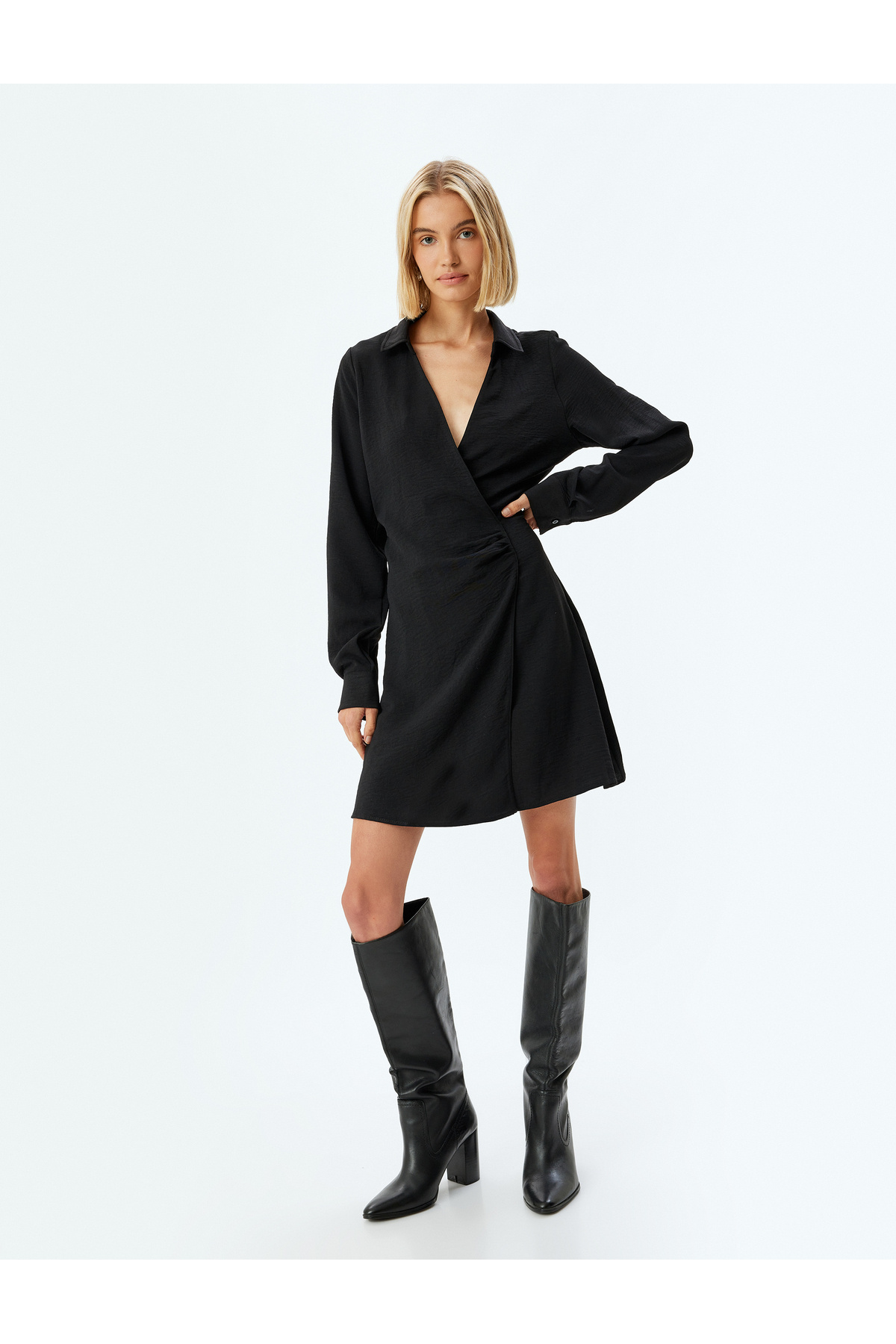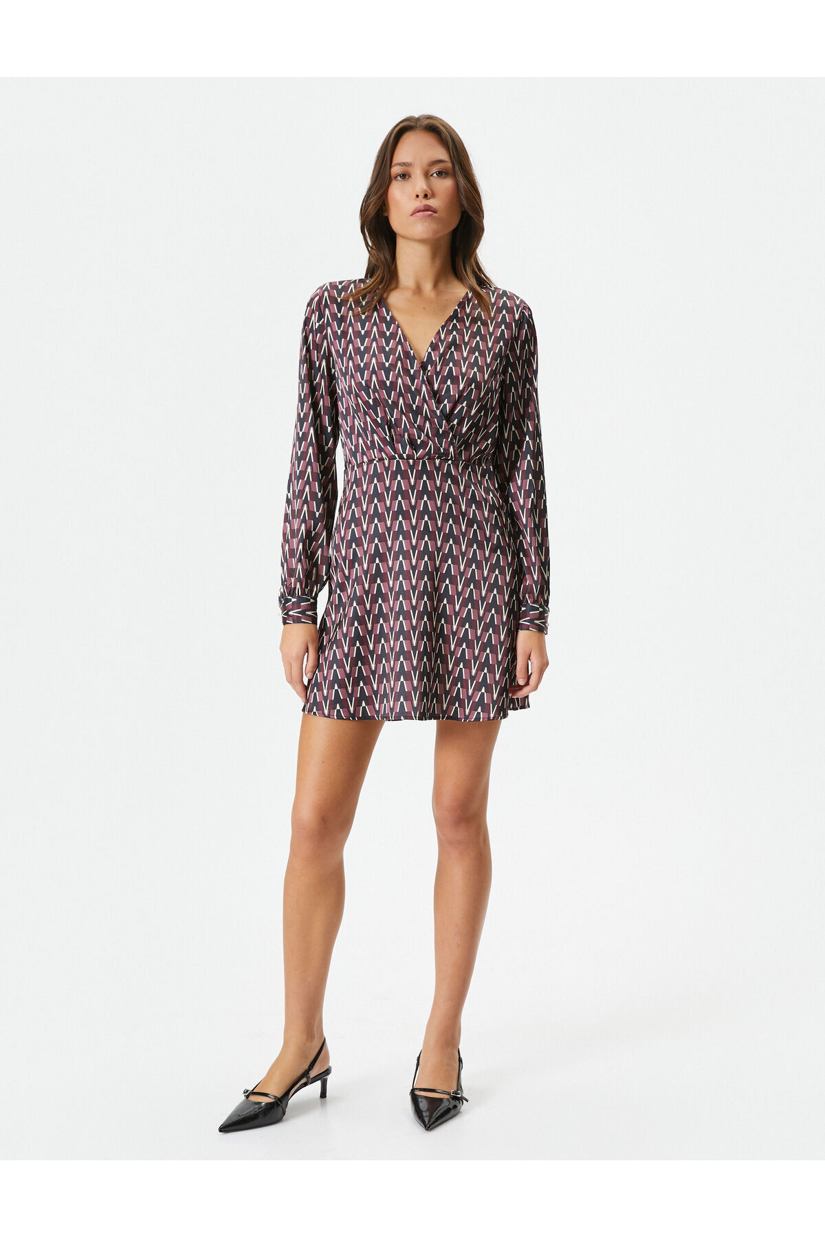 Kruvaze Mini Elbise Uzun Kollu V Yaka Kruvaze Mini Elbise Uzun Kollu V Yaka 4WAK80156PW 44