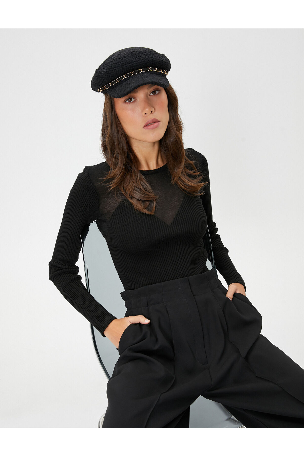 Triko Kazak V Yaka Dantelli Fitilli - El Emeği Koleksiyonu Triko Kazak V Yaka Dantelli Fitilli - El Emeği Koleksiyonu 4WAK90344HT L