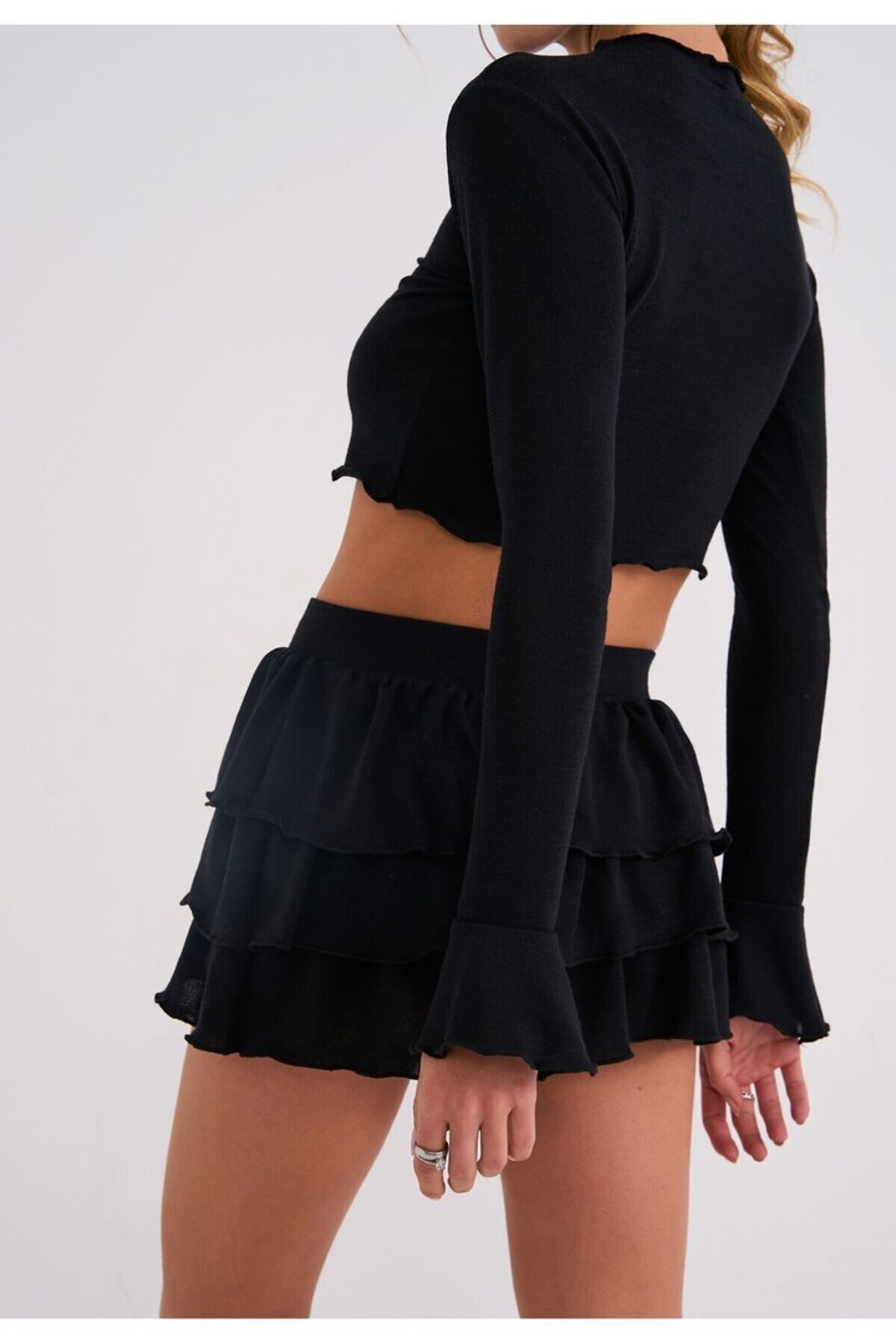 Kadın Sugar And Spice Siyah Yumuşak Şardonlu Şort Etek Üst Set Kadın Sugar And Spice Siyah Yumuşak Şardonlu Şort Etek Üst Set TYCERZK0VN169842052022214 L