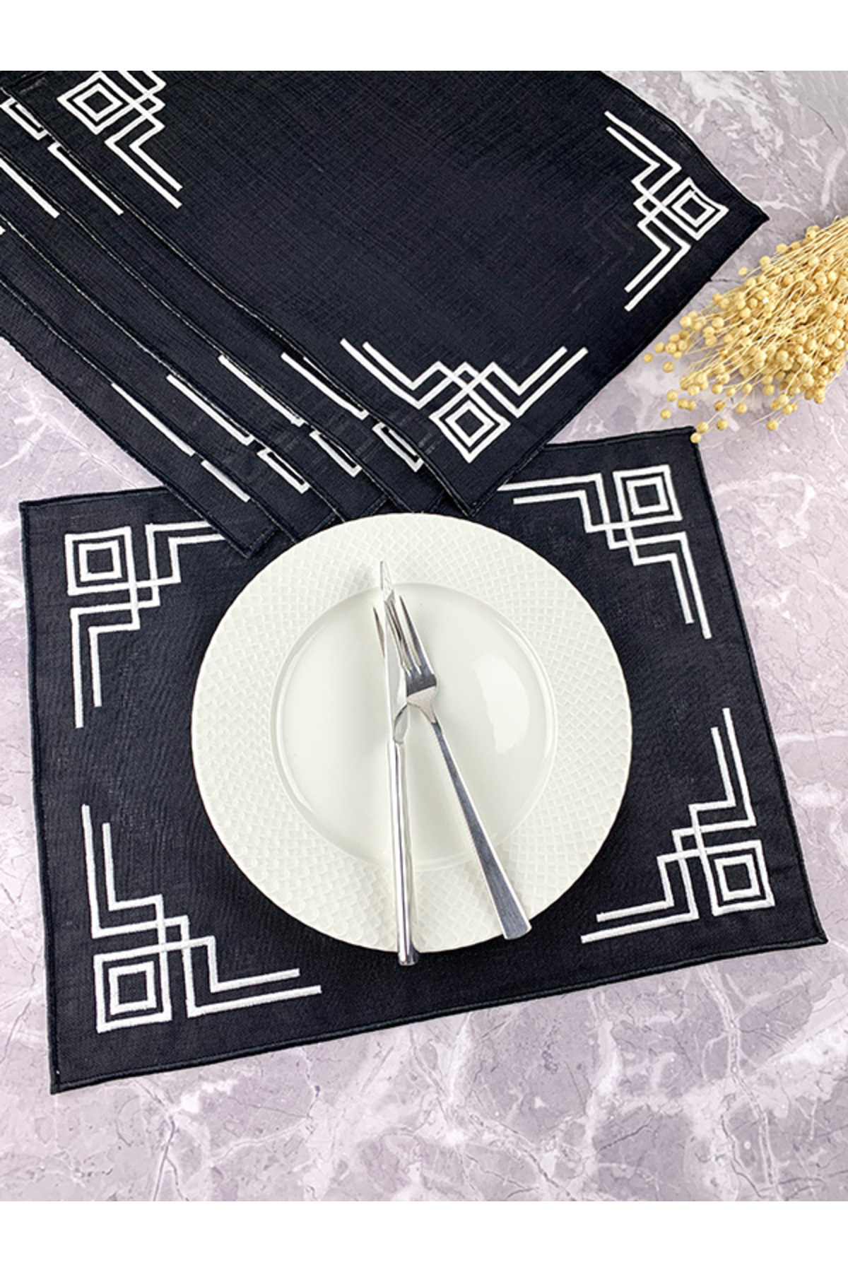 Siyah Renkli Siyah Nakışlı Dikdörtgen 34x44cm 6'lı Set Amerikan Servis Siyah Renkli Siyah Nakışlı Dikdörtgen 34x44cm 6'lı Set Amerikan Servis WRE2FRAMEAME6 تک سایز