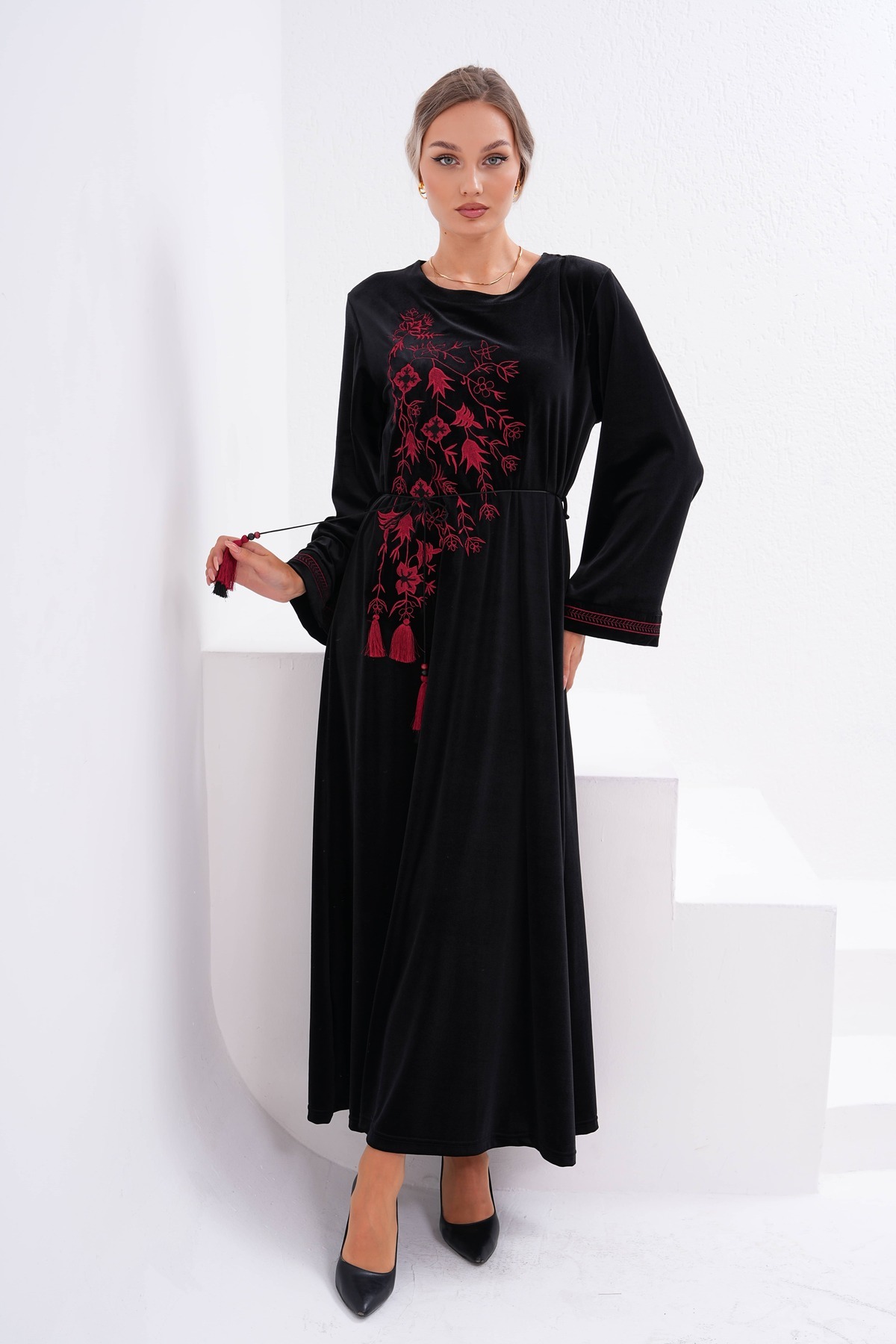 Kadın Lacivert kadife uzun elbise Kadın Lacivert kadife uzun elbise 00123 3XL