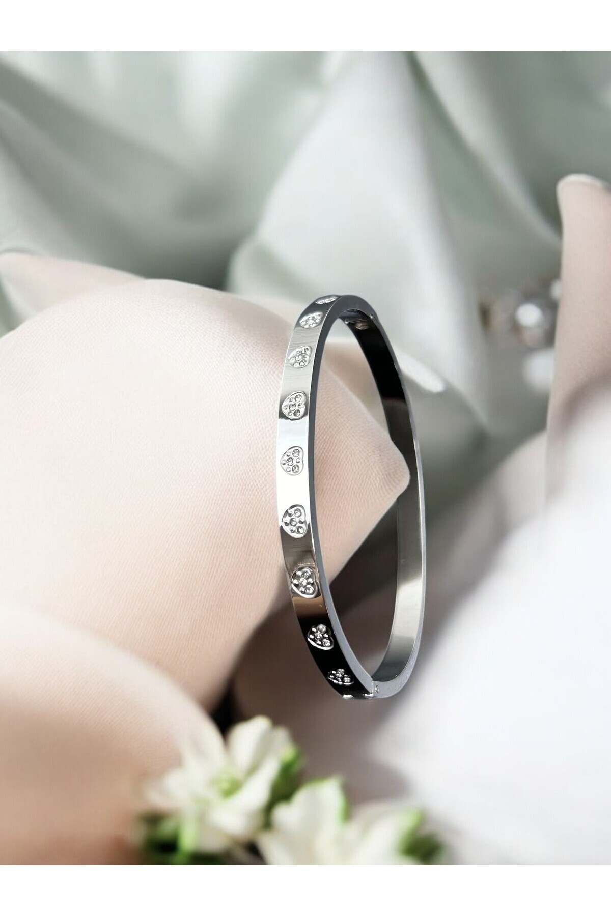 Taş Detaylı Çelik Kelepçe Bileklik Taş Detaylı Çelik Kelepçe Bileklik 1050 تک سایز