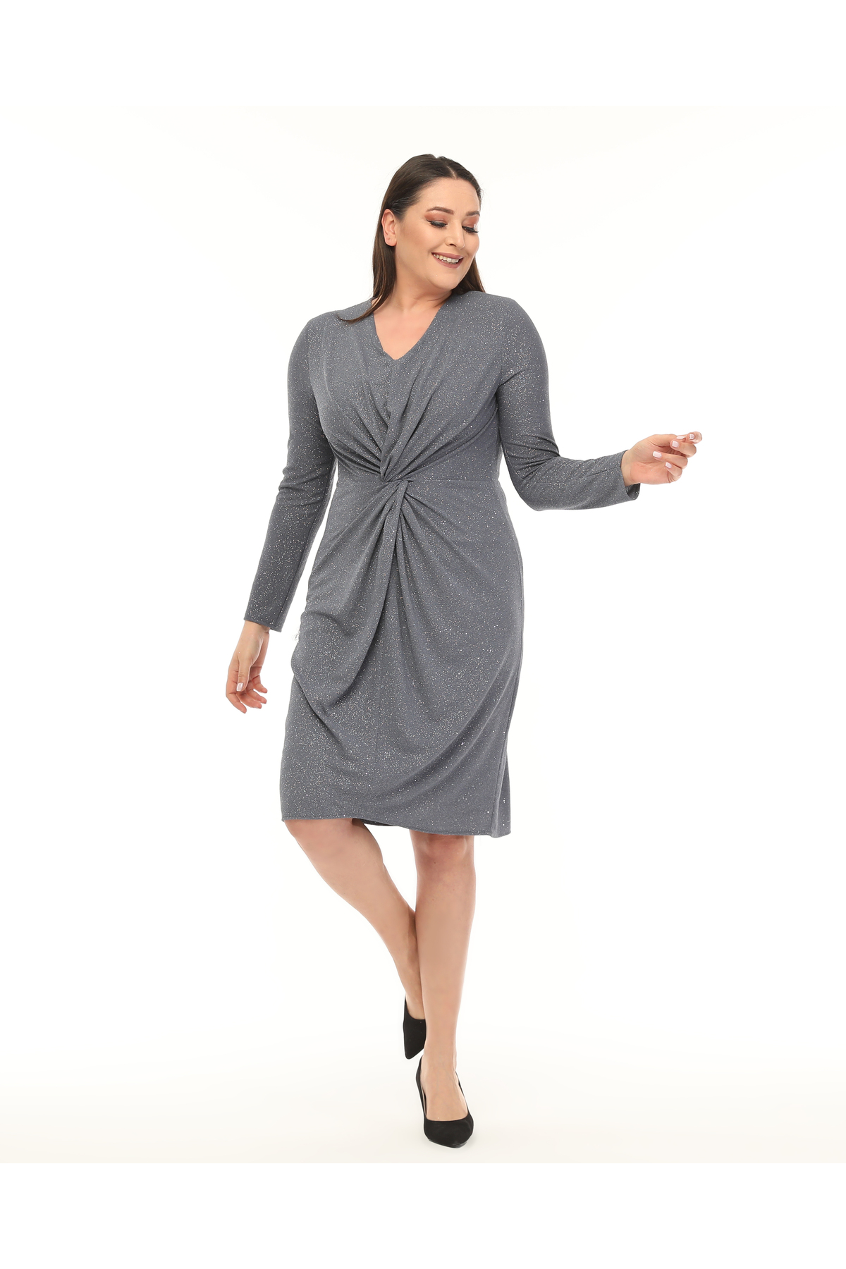 Orta Beden Önü Düğümlü Esnek Elbise Orta Beden Önü Düğümlü Esnek Elbise 80183 46