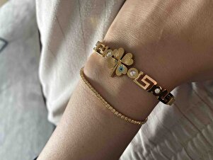 Çelik Kelepçe Bileklik - Zirkon Taşlı Nazar Boncuklu Yoncalı Çelik Kelepçe - Yeni Sezon Çelik Kelepçe Bileklik - Zirkon Taşlı Nazar Boncuklu Yoncalı Çelik Kelepçe - Yeni Sezon KHGL682810239 17 cm