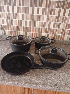 Döküm Granit 7 Parça Tencere Seti – 3 Kat Yanmaz Yapışmaz Kaplama, Silikon Tutacak Hediyeli Döküm Granit 7 Parça Tencere Seti – 3 Kat Yanmaz Yapışmaz Kaplama, Silikon Tutacak Hediyeli Eda7PARÇA تک سایز