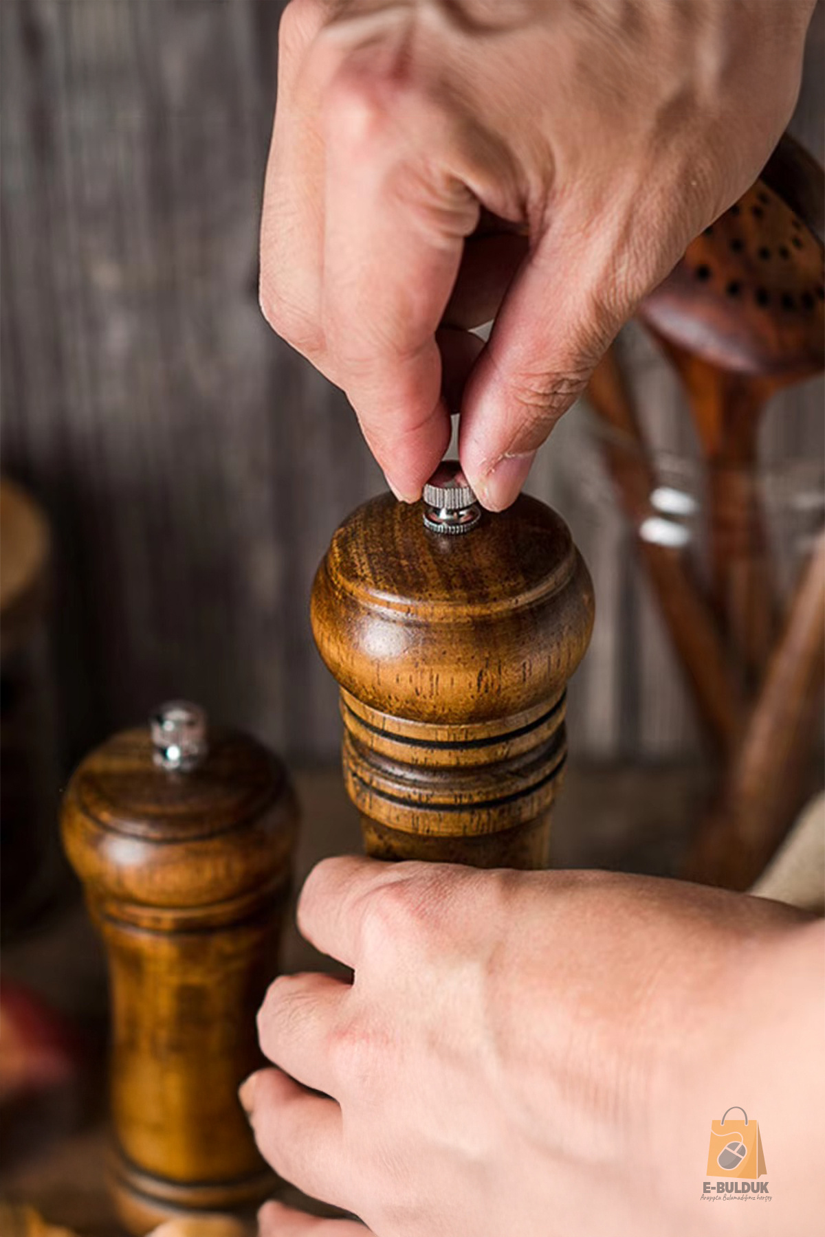 Ahşap Baharat Tuz Öğütücü Değirmen Tuzluk Baharatlık 14 Cm ve 21 Cm 2'li Set Kahverengi Ahşap Baharat Tuz Öğütücü Değirmen Tuzluk Baharatlık 14 Cm ve 21 Cm 2'li Set Kahverengi 9412 تک سایز