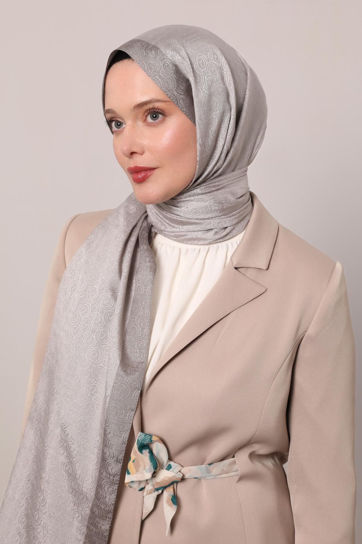 Jakarlı Şal - Zigzag Desenli - Gümüş Jakarlı Şal - Zigzag Desenli - Gümüş 3078 70 x 190