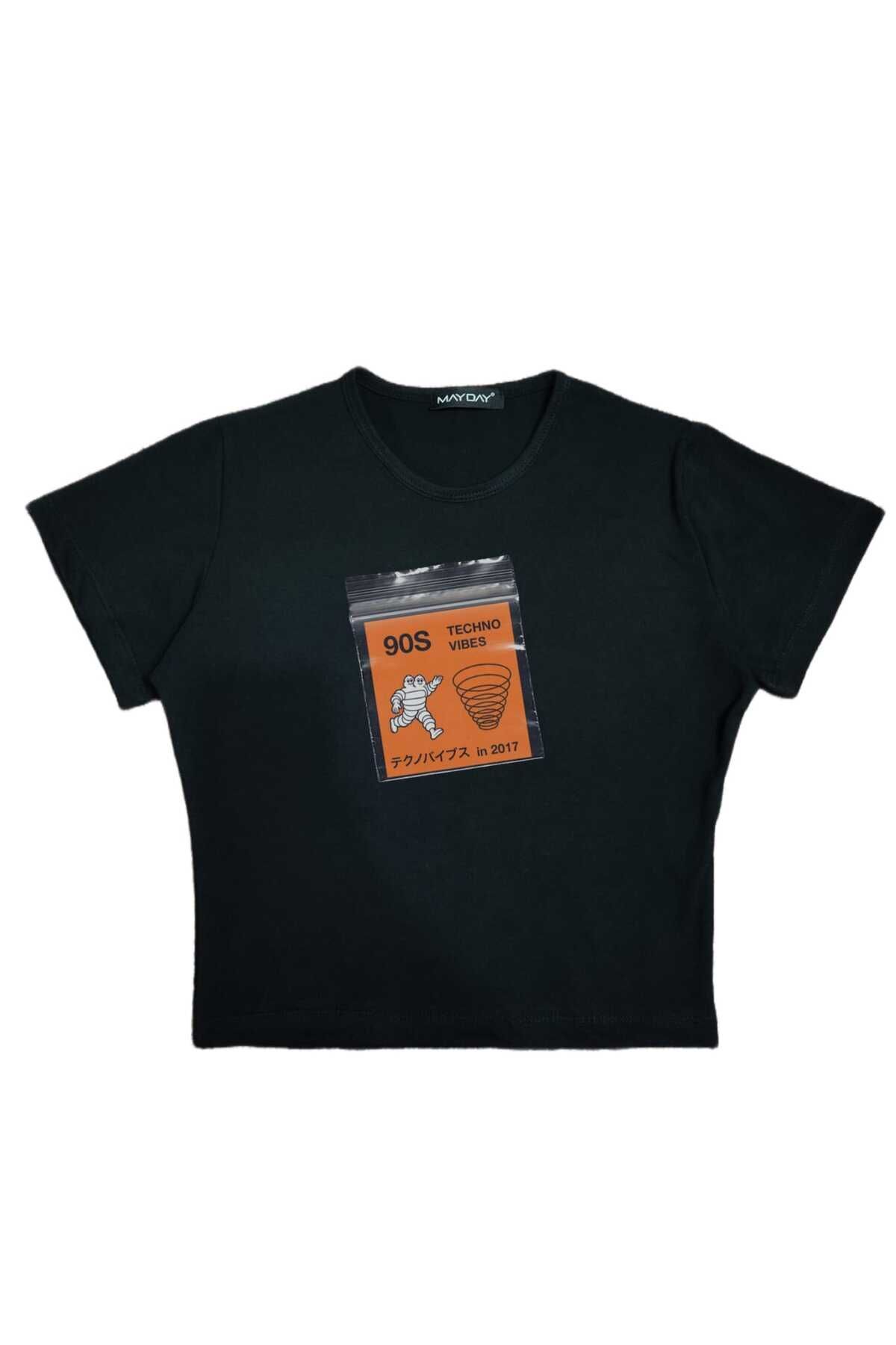 Kadın Üste Oturan Kalıp Bel Boy Crop Baskılı Bisiklet Yaka Baby Tee Kadın Üste Oturan Kalıp Bel Boy Crop Baskılı Bisiklet Yaka Baby Tee krembbtdarko L