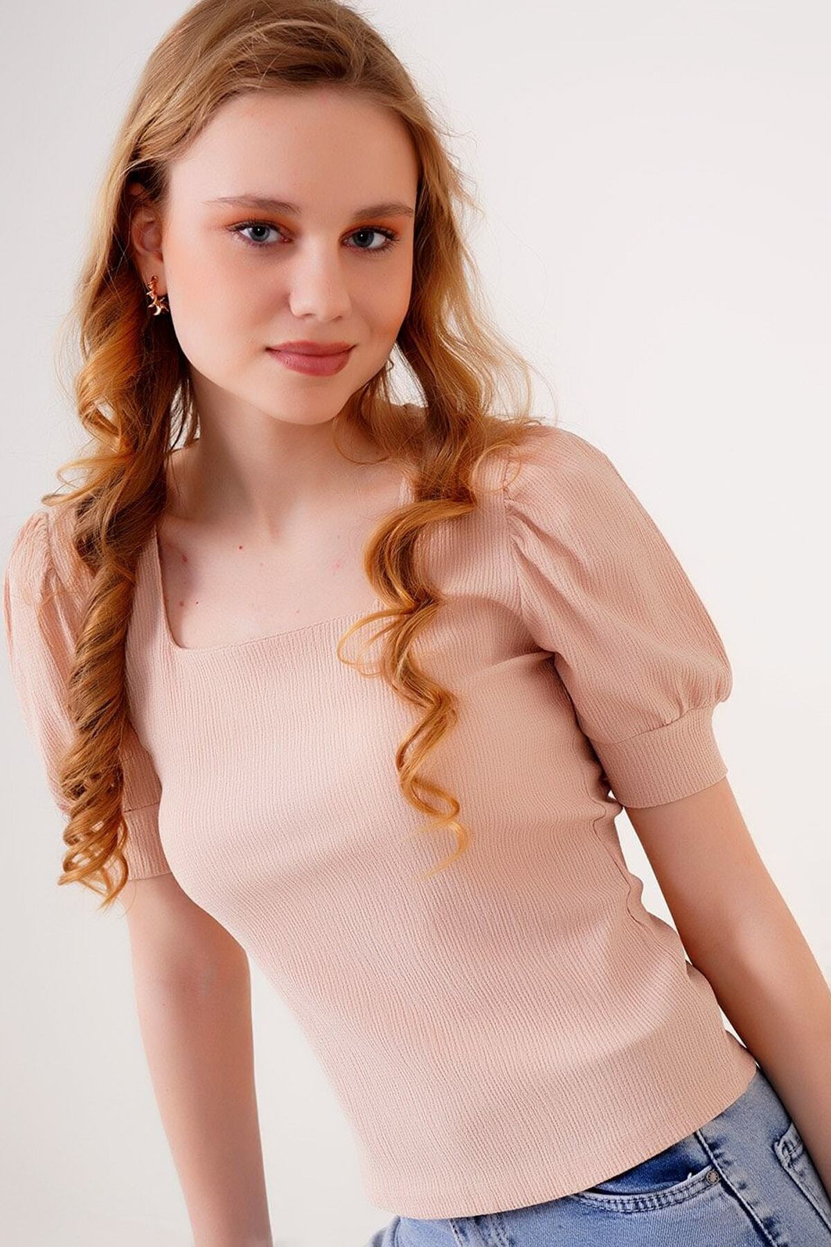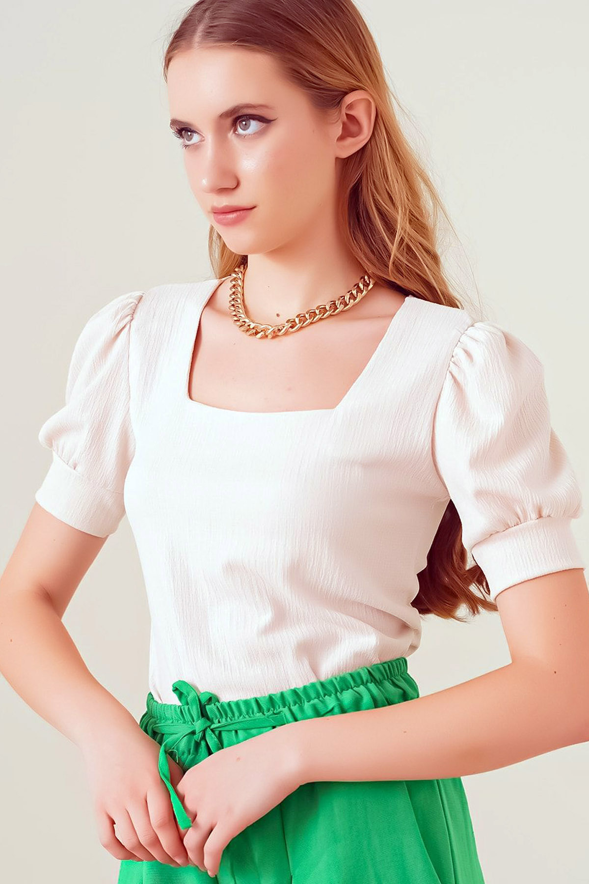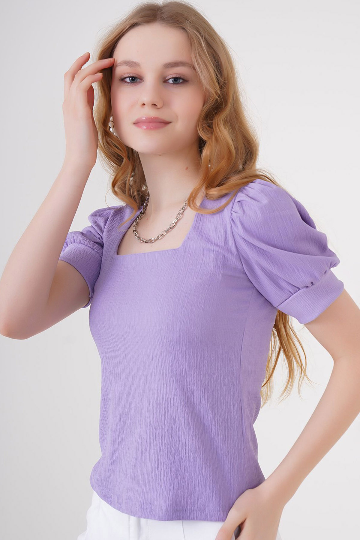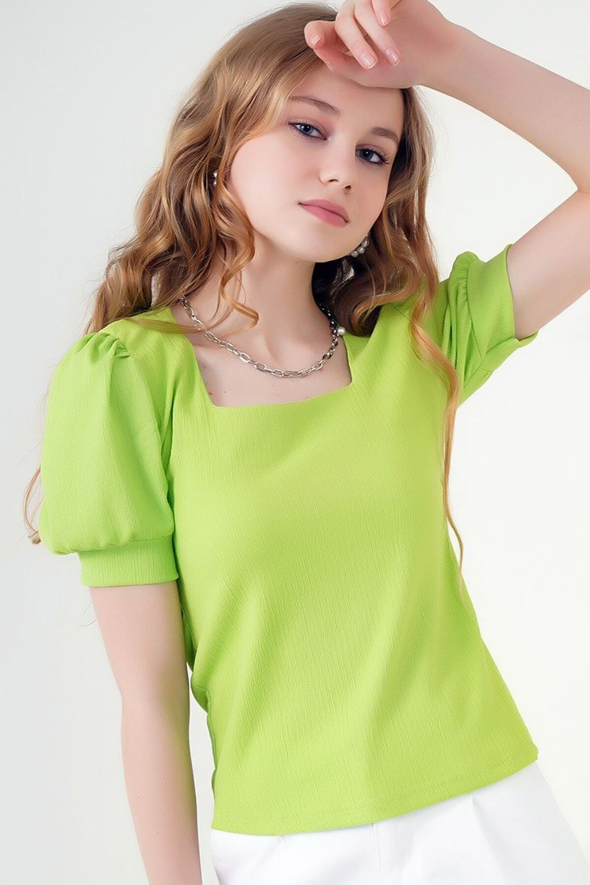 Kısa Balon Karpuz Kollu U Yakalı Rahat Kalıp Likralı Bluz Kısa Balon Karpuz Kollu U Yakalı Rahat Kalıp Likralı Bluz CLLK-0475 42