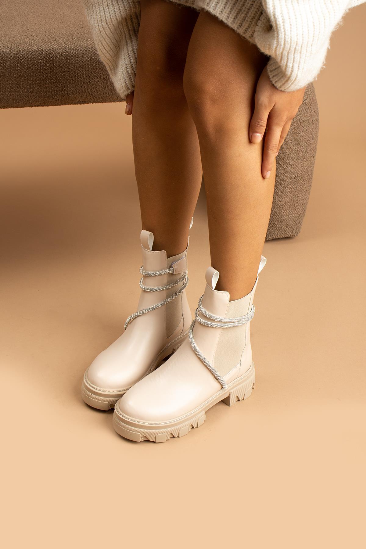 Fausta Kadın Bot&Bootie Dolamalı Taşlı Postal Bej Deri Fausta Kadın Bot&Bootie Dolamalı Taşlı Postal Bej Deri 40