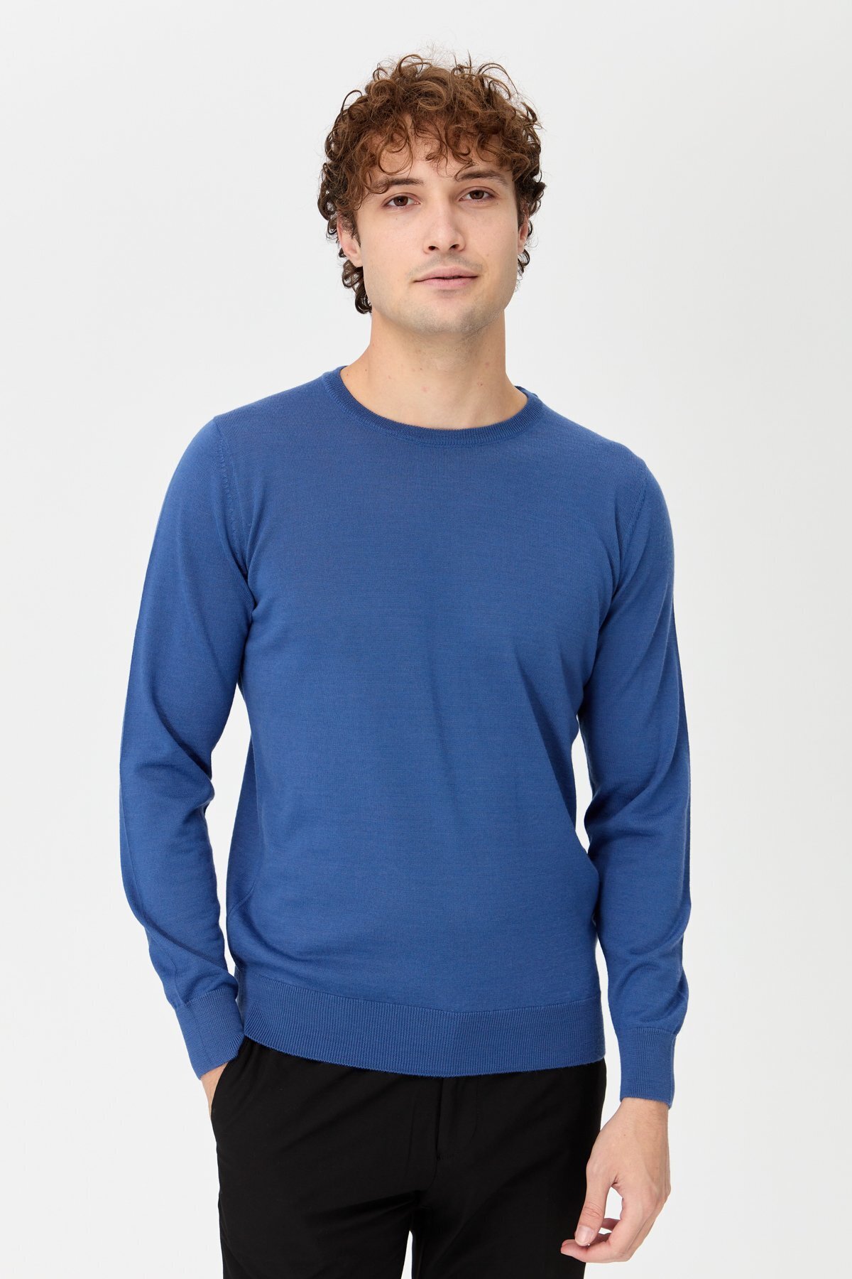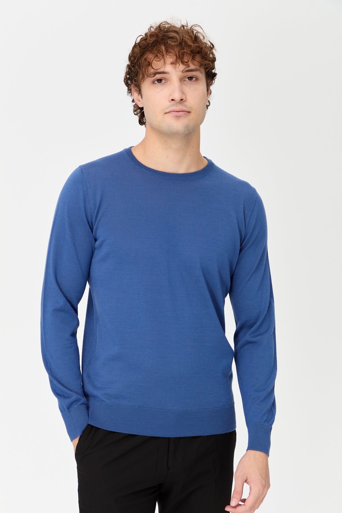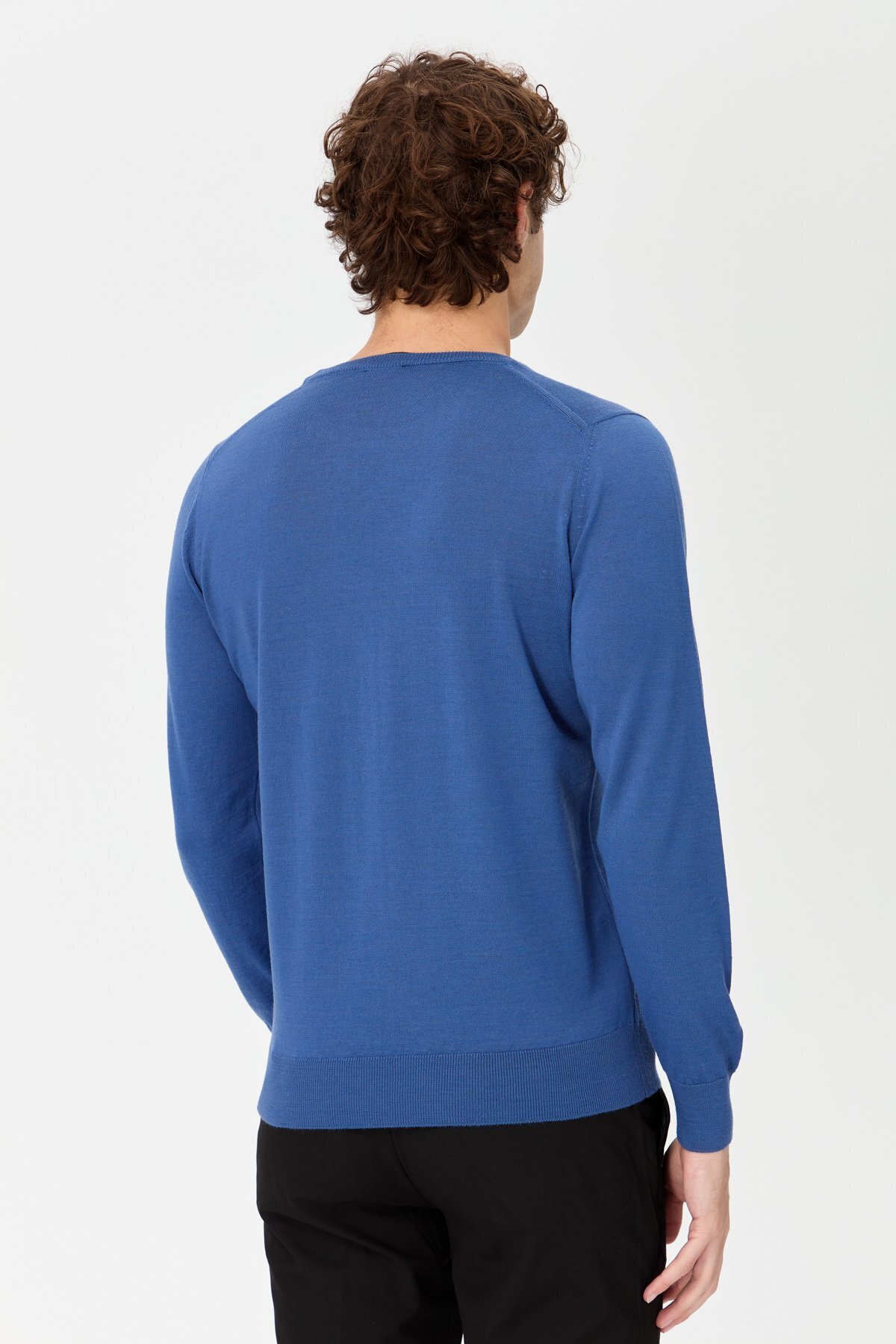 Erkek Basic Sıfır Yaka İnce Triko Kazak İndigo Erkek Basic Sıfır Yaka İnce Triko Kazak İndigo 21603 4XL