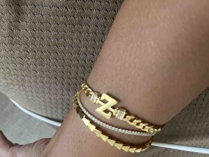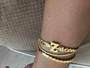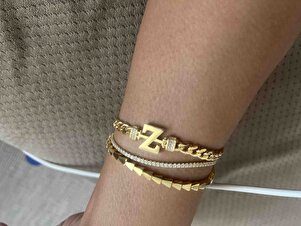 Gümüş altın yaldızlı zirkon taşlı üç boyutlu gurmet zincirli Z harf bileklik SGTL12300GOLD-Z Gümüş altın yaldızlı zirkon taşlı üç boyutlu gurmet zincirli Z harf bileklik SGTL12300GOLD-Z تک سایز