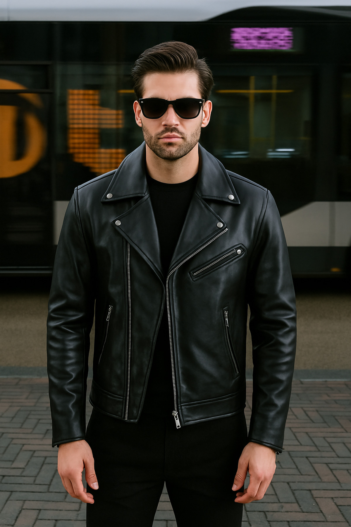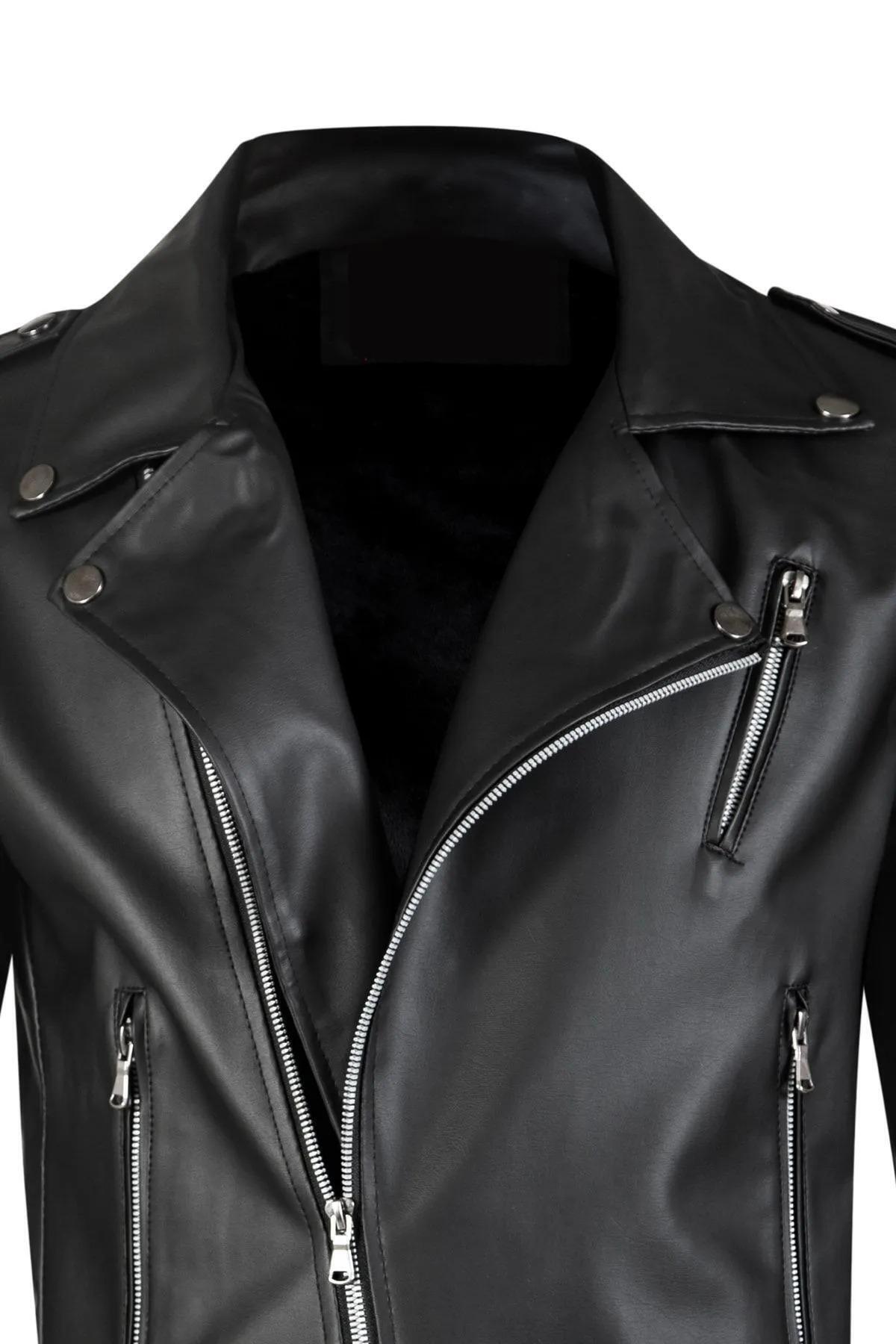 Erkek Siyah Kuzey Model Deri Ceket Erkek Siyah Kuzey Model Deri Ceket T-1011 2XL