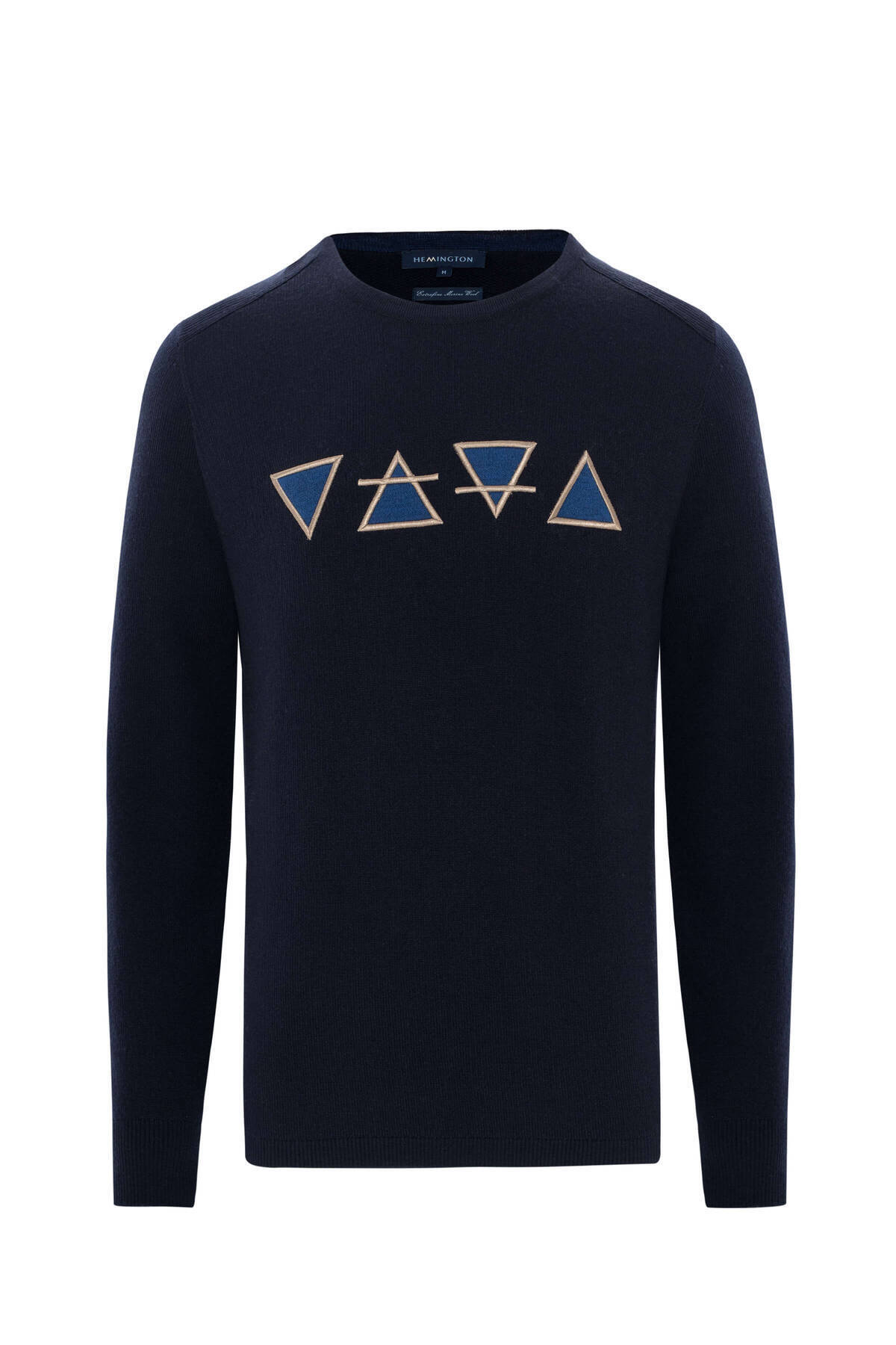 Üçgen Desen Lacivert Merino Yün Triko Üçgen Desen Lacivert Merino Yün Triko 234326|010 2XL
