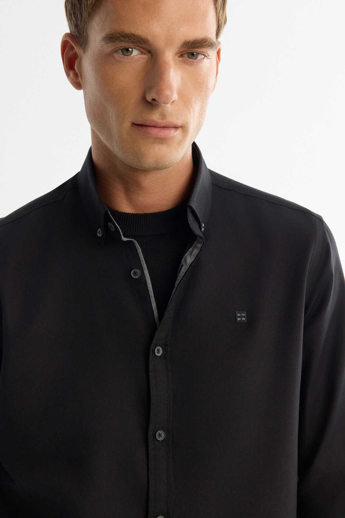 Erkek Siyah Düğmeli Yaka Hediye Kutulu %100 Pamuk Basic Gömlek B002034 Erkek Siyah Düğmeli Yaka Hediye Kutulu %100 Pamuk Basic Gömlek B002034 3XL