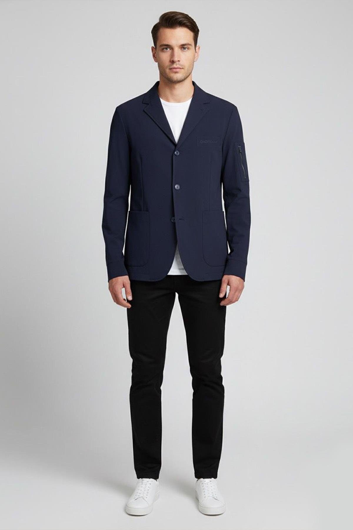 Lacivert Mendil Detay Blazer, Klasik Slim Fit Erkek Ceket Lacivert Mendil Detay Blazer, Klasik Slim Fit Erkek Ceket 1052 56
