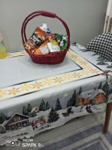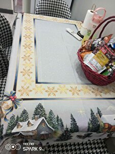 Yılbaşı Evler Ve Geyikler Desenli Dertsiz Masa Örtüsü Yılbaşı Evler Ve Geyikler Desenli Dertsiz Masa Örtüsü M61 120 x 150