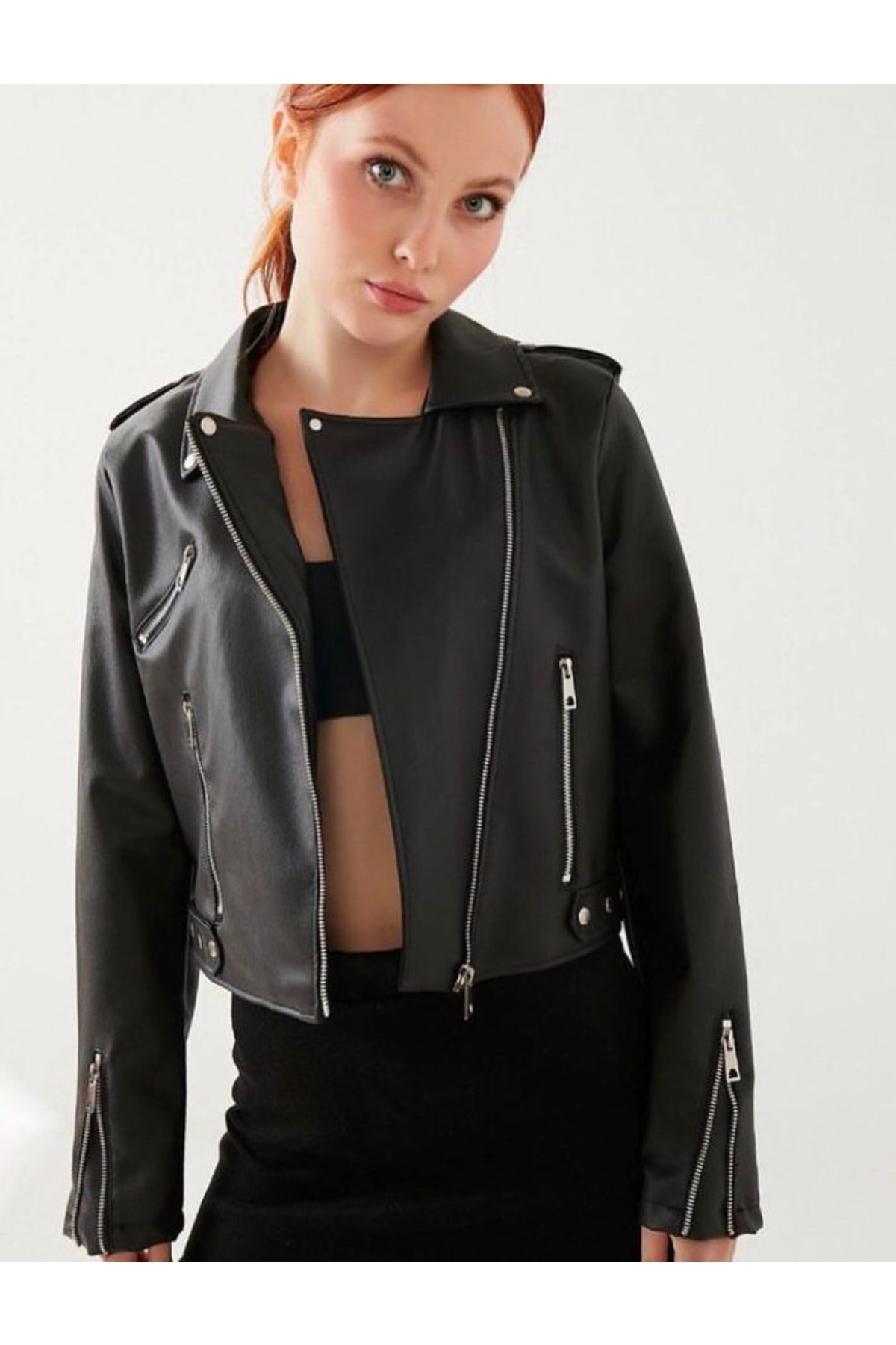 Kadın Siyah Kemerli Deri Mont Ceket Kadın Siyah Kemerli Deri Mont Ceket London-133 XL