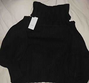 Siyah Madonna Yaka Balon Kol Triko Kazak Siyah Madonna Yaka Balon Kol Triko Kazak SW23K4897 M