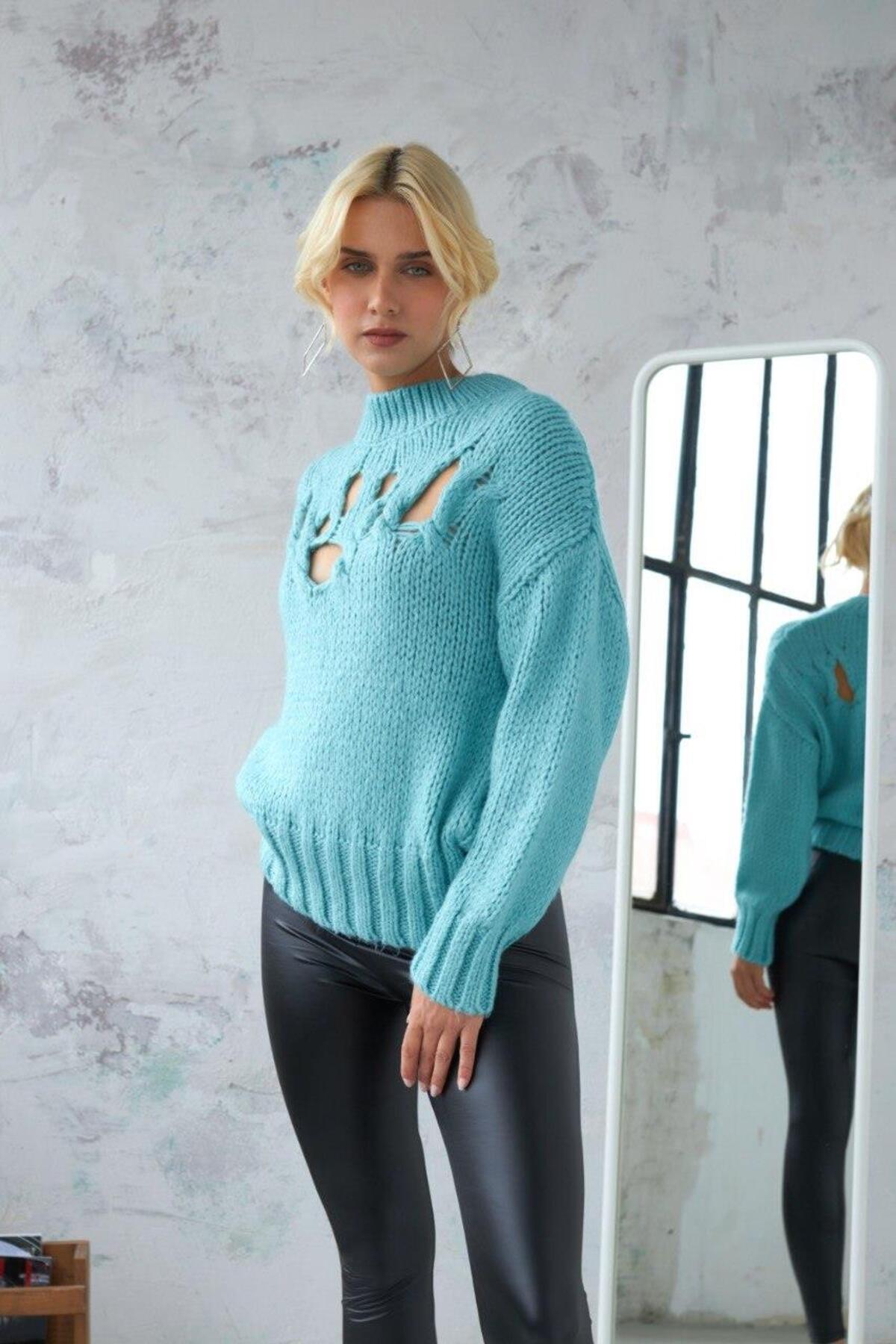Delik Detaylı Yarım Balıkçı Yaka Triko Kazak 1200-09 Delik Detaylı Yarım Balıkçı Yaka Triko Kazak 1200-09 S4K1200 0