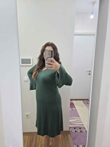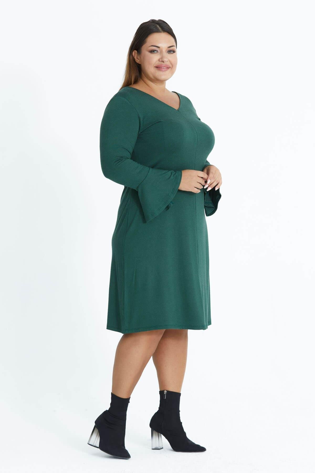Kadın Zümrüt Yeşil V Yaka Volan Kol Büyük Beden Esnek Yün Viskon Elbise Kadın Zümrüt Yeşil V Yaka Volan Kol Büyük Beden Esnek Yün Viskon Elbise 2389101 42-44