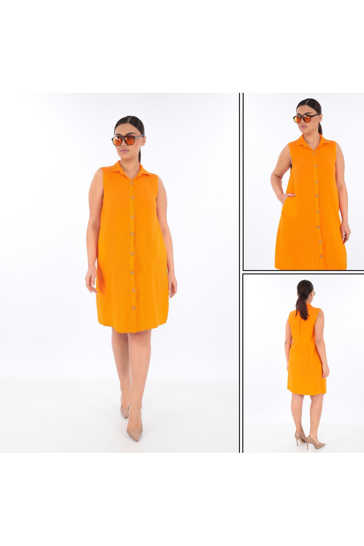 Turuncu Desenli Plaj Elbise Turuncu Desenli Plaj Elbise 00478 XL