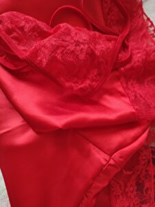 Kadın Kırmızı Dantelli Saten Takım Kadın Kırmızı Dantelli Saten Takım 2306 XL