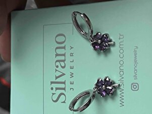925 Ayar Gümüş Mor Taşlı Yonca Küpe 925 Ayar Gümüş Mor Taşlı Yonca Küpe DL5891 تک سایز