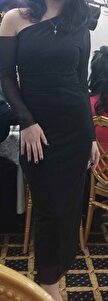 Tek Omuz Kolu Tül Detay Midi Şık Elbise Siyah Tek Omuz Kolu Tül Detay Midi Şık Elbise Siyah ggfbdvsf L