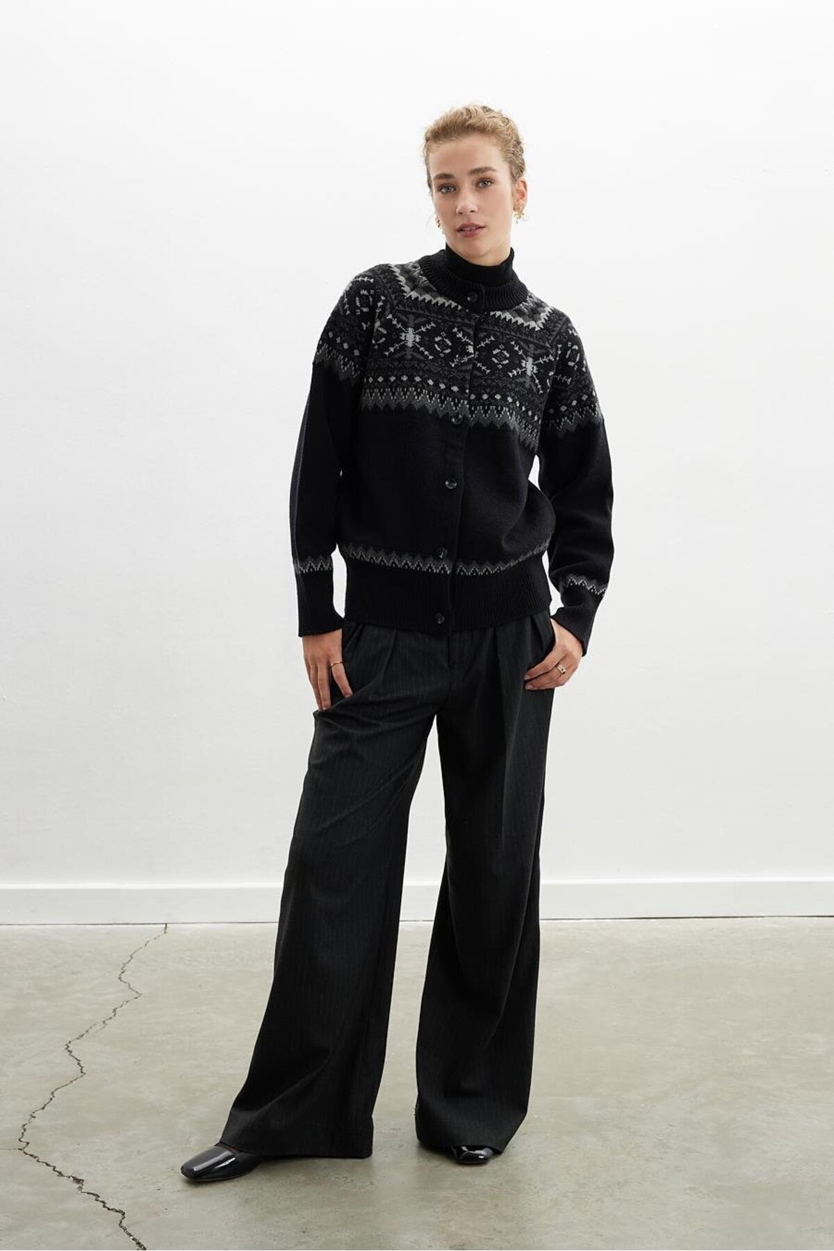 Aıslıng Cardıgan Bisiklet Yaka Yün Karışım Etnik Motif Kadın Triko Hırka - Siyah Aıslıng Cardıgan Bisiklet Yaka Yün Karışım Etnik Motif Kadın Triko Hırka - Siyah 12703001 XL