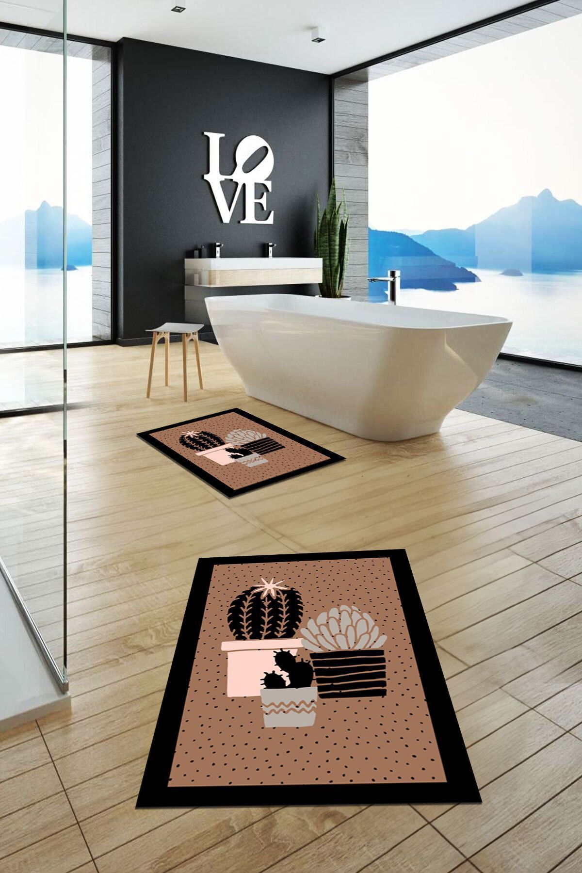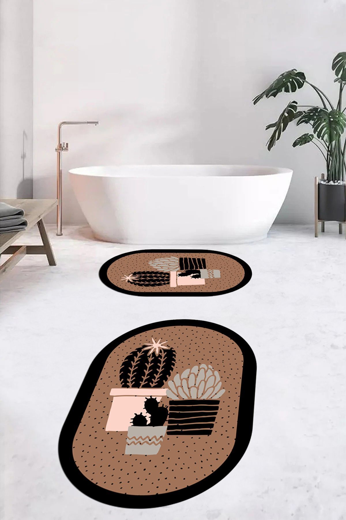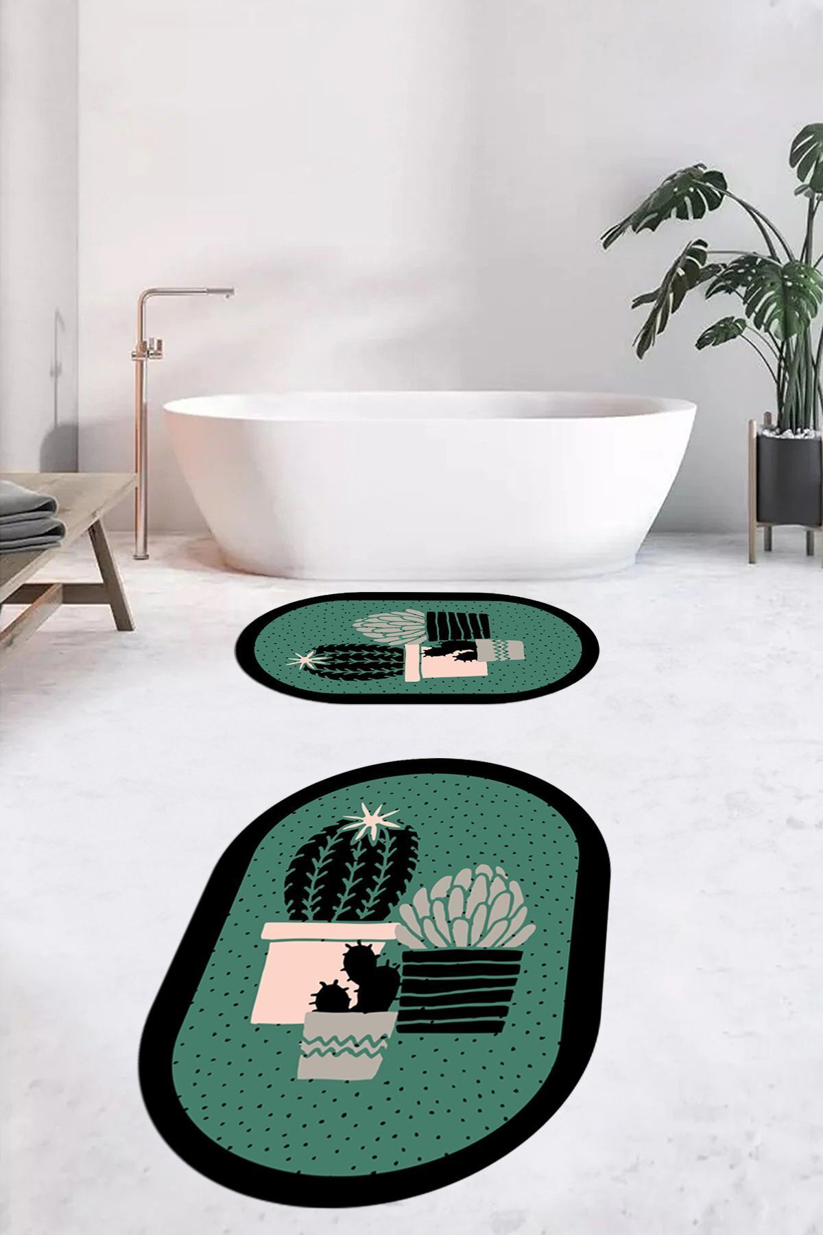 Dijital Yıkanabilir Kaymaz Kaktüs Çiçek Desen İkili Oval Banyo Halısı Klozet Takımı Dijital Yıkanabilir Kaymaz Kaktüs Çiçek Desen İkili Oval Banyo Halısı Klozet Takımı KLZT-22 تک سایز