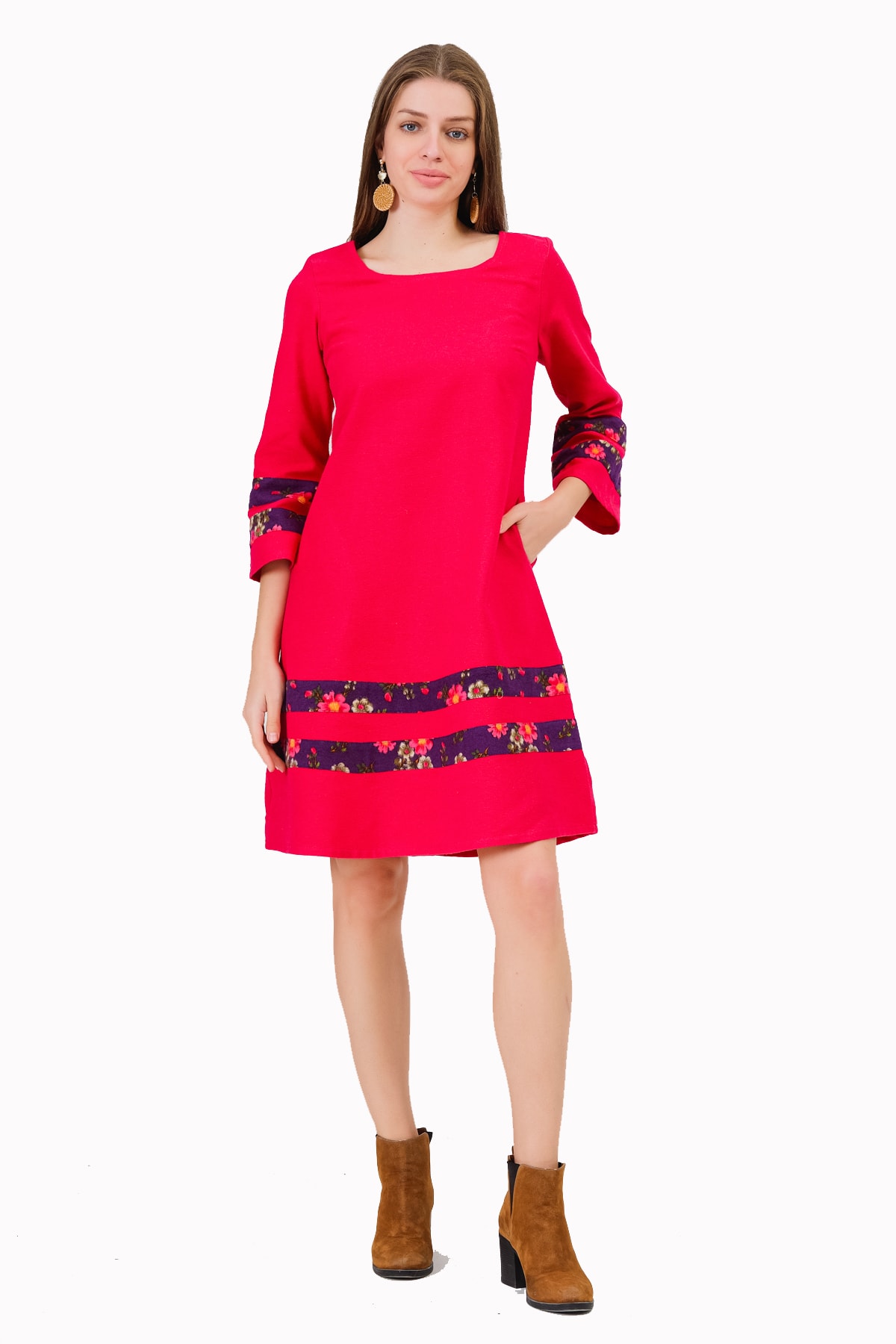Divitin Pazen'den Çiçekli Etek Ve Kol Ucu Ponpon Aksesuarlı Bordo Kışlık Elbise Divitin Pazen'den Çiçekli Etek Ve Kol Ucu Ponpon Aksesuarlı Bordo Kışlık Elbise 17553 42