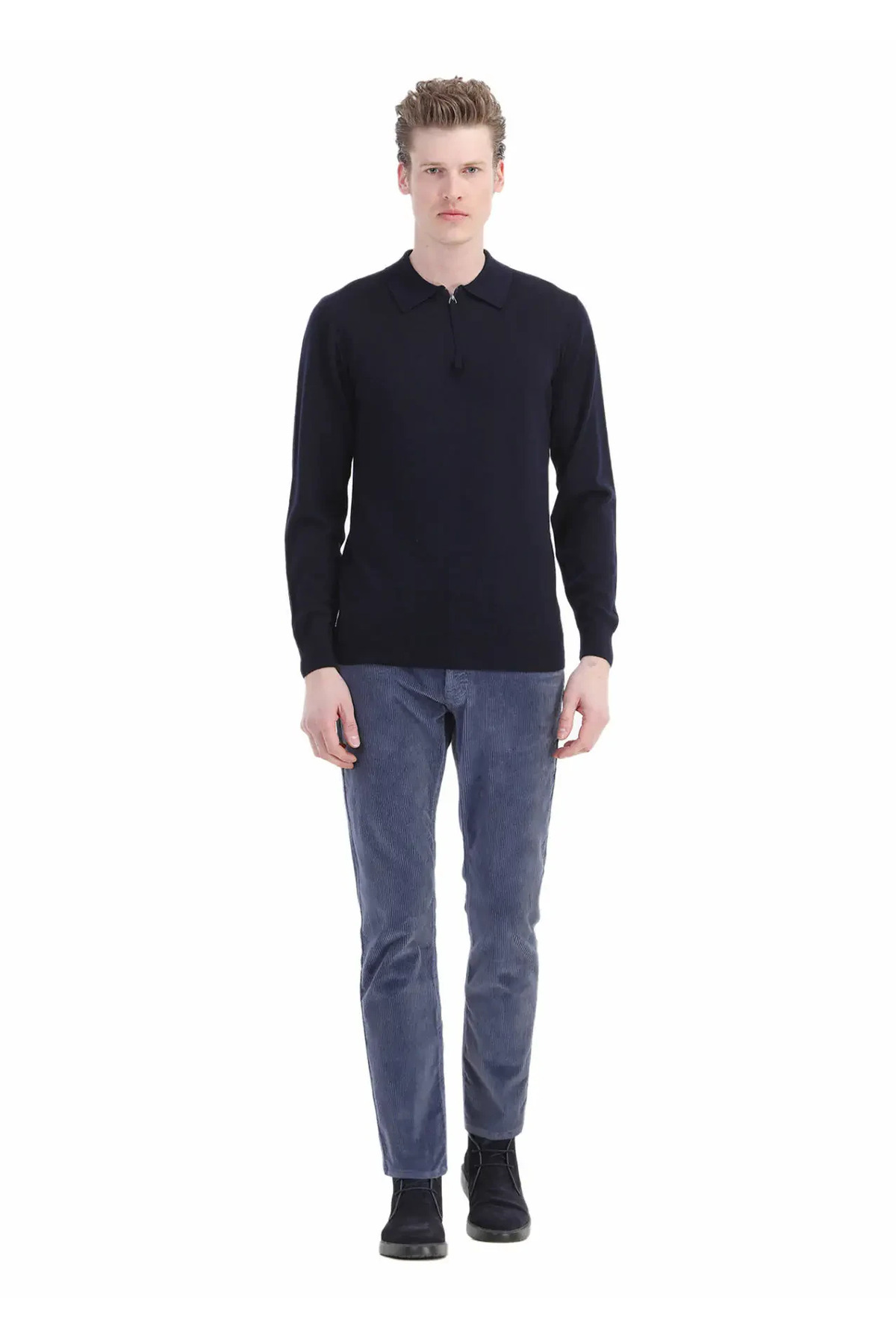 Lacivert Polo Yaka Düz Örgü %100 Yün Triko Kazak Lacivert Polo Yaka Düz Örgü %100 Yün Triko Kazak 10145659 3XL