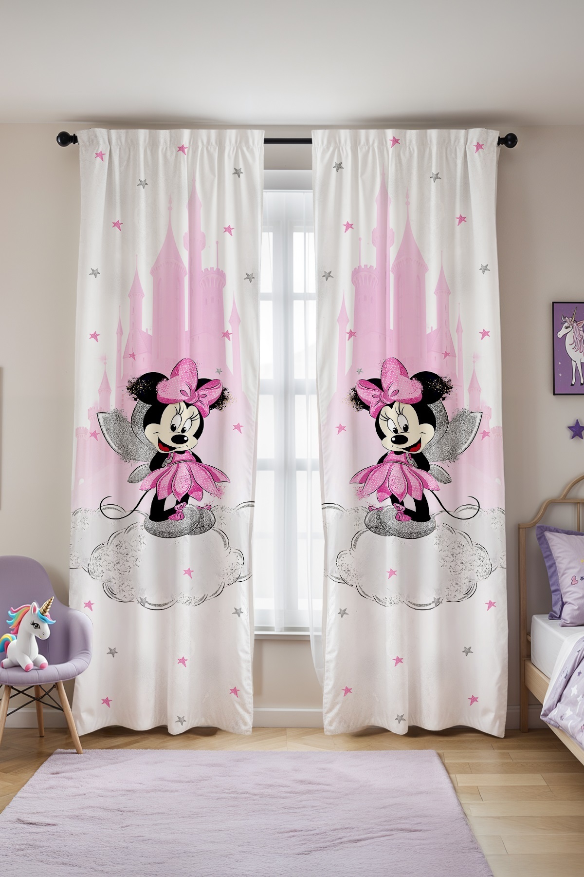 BEBEK VE ÇOCUK ODASI Seksekli Minnie Mouse Desenli 2 Kanat Fon Perde BEBEK VE ÇOCUK ODASI Seksekli Minnie Mouse Desenli 2 Kanat Fon Perde MKTP-8180 140 x 270