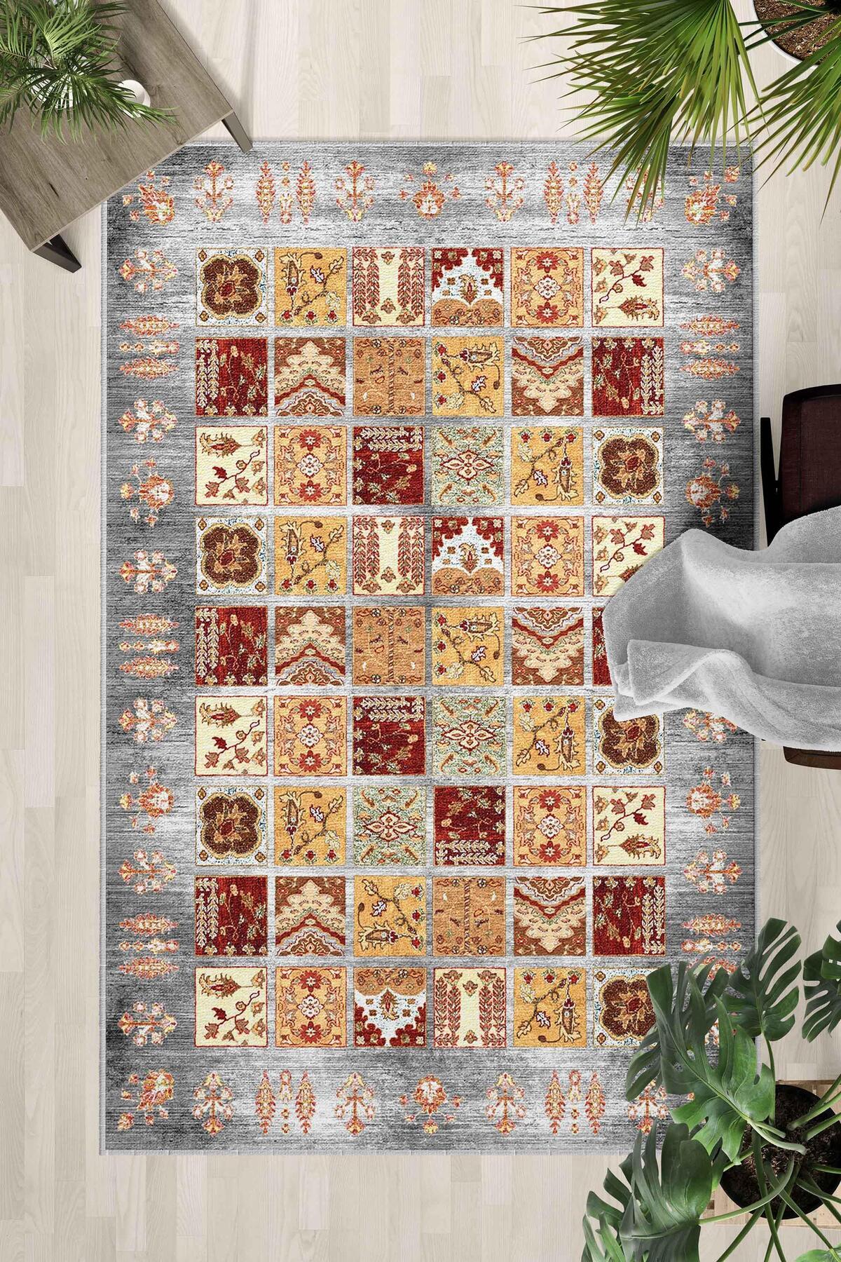 Yeni Tasarım Etnik Desen Kaymaz Taban Yıkanabilir Yolluk Mutfak Salon Koridor Halısı Yeni Tasarım Etnik Desen Kaymaz Taban Yıkanabilir Yolluk Mutfak Salon Koridor Halısı ETNİK-18 160 x 230
