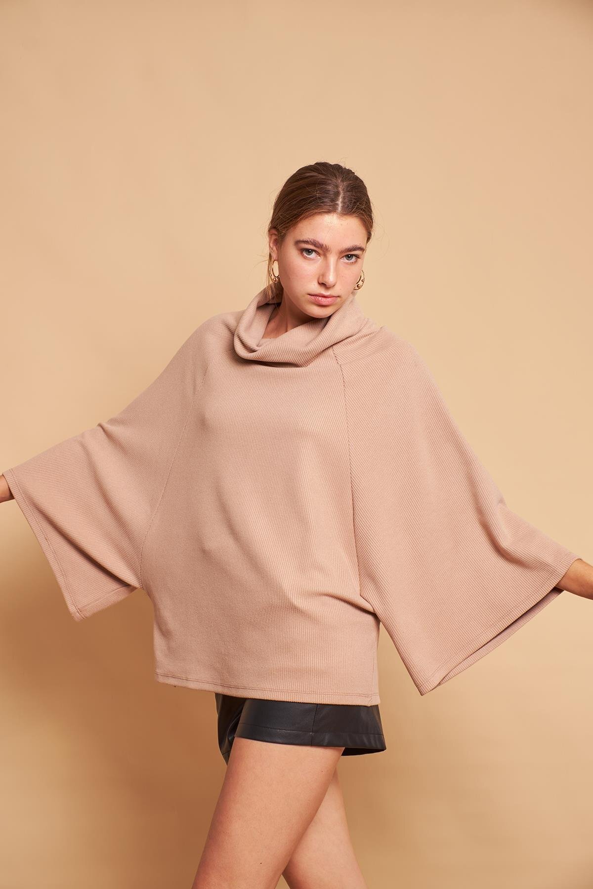 Degaje Yaka Balıkçı Yarasa Model Rahat Kesim Oversize Triko Bluz-Koyu Bej Degaje Yaka Balıkçı Yarasa Model Rahat Kesim Oversize Triko Bluz-Koyu Bej 20458 L