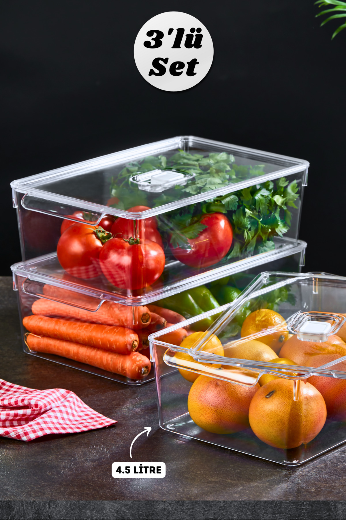 Gloss Large 3'lü Kapaklı Buzdolabı Düzenleyici Ve Dolap Içi Düzenleyici Organizer Saklama Kabı Gloss Large 3'lü Kapaklı Buzdolabı Düzenleyici Ve Dolap Içi Düzenleyici Organizer Saklama Kabı MHL0003 تک سایز