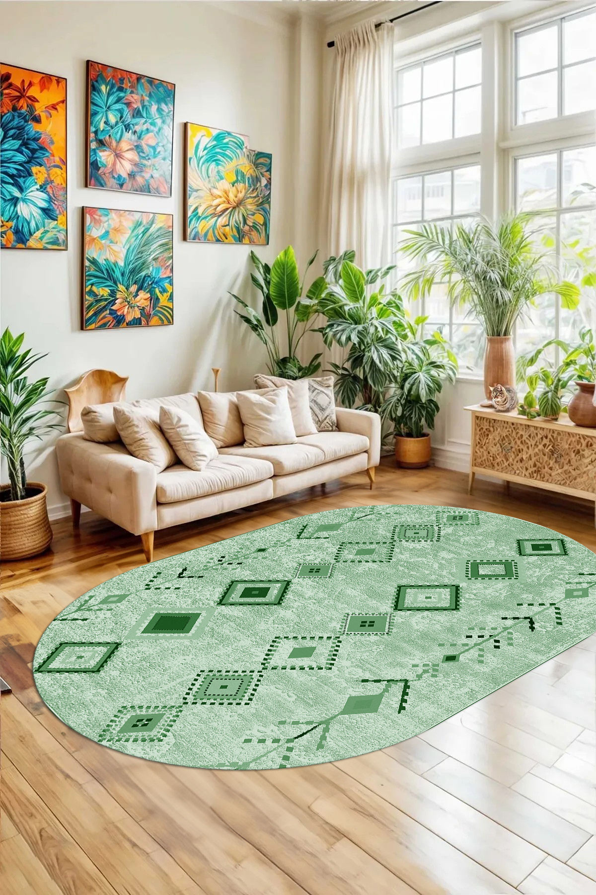 Çerçeveli Jüt-Hasır Desen Kaymaz Yıkanabilir Modern Oval Yolluk Salon Halısı, O-JÜT-20-YEŞİL, Çerçeveli Jüt-Hasır Desen Kaymaz Yıkanabilir Modern Oval Yolluk Salon Halısı, O-JÜT-20-YEŞİL, 160 x 230