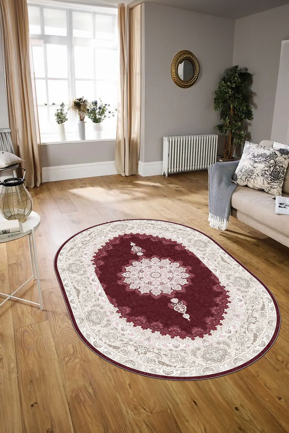 Çiçekli Klasik Motifli Dijital Kaymaz Taban Yıkanabilir Oval Yolluk Salon Halısı Çiçekli Klasik Motifli Dijital Kaymaz Taban Yıkanabilir Oval Yolluk Salon Halısı KLASİK-29 160 x 230