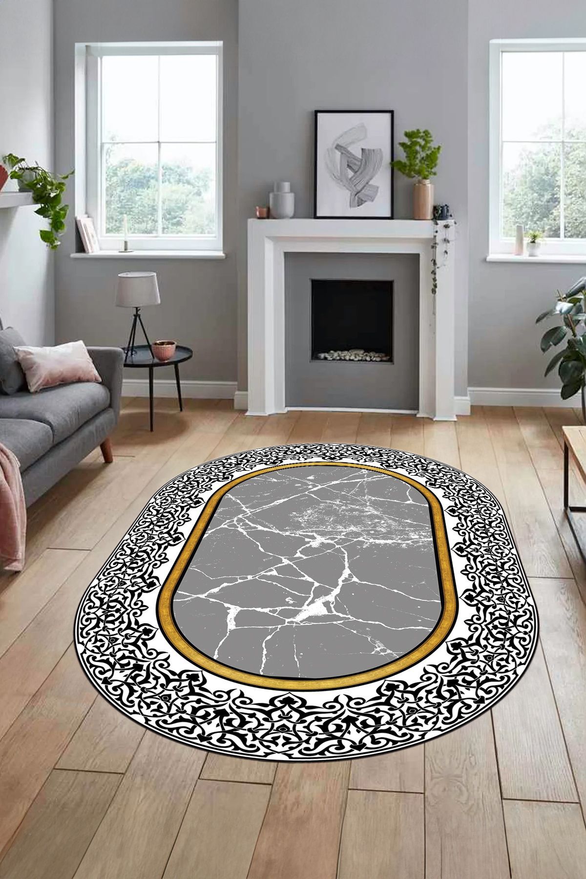 Dijital Kaymaz Taban Yıkanabilir Mermer Desen Oval Mutfak Koridor Salon Halısı Dijital Kaymaz Taban Yıkanabilir Mermer Desen Oval Mutfak Koridor Salon Halısı MERMER-10 160 x 230