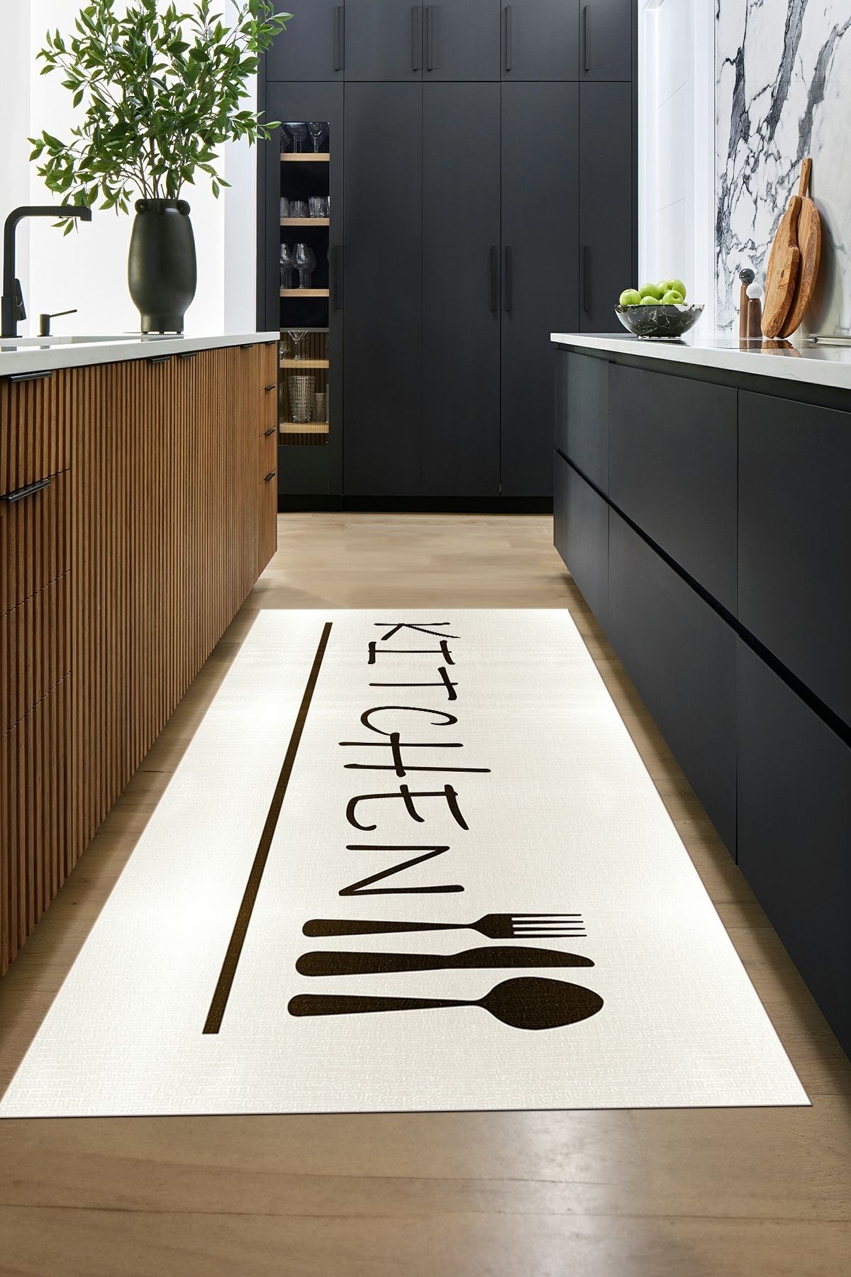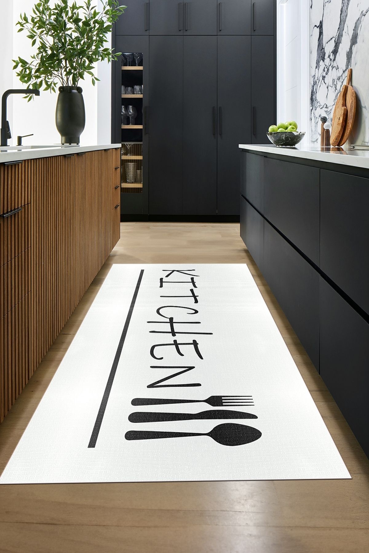Kitchen Yazılı Kaşık Çatal Bıçak Desenli Yıkanabilir Oval Mutfak Halısı, O-MUTFAK-49-BEYAZ, Kitchen Yazılı Kaşık Çatal Bıçak Desenli Yıkanabilir Oval Mutfak Halısı, O-MUTFAK-49-BEYAZ, TYCRJTRK4N169901215776913 160 x 230