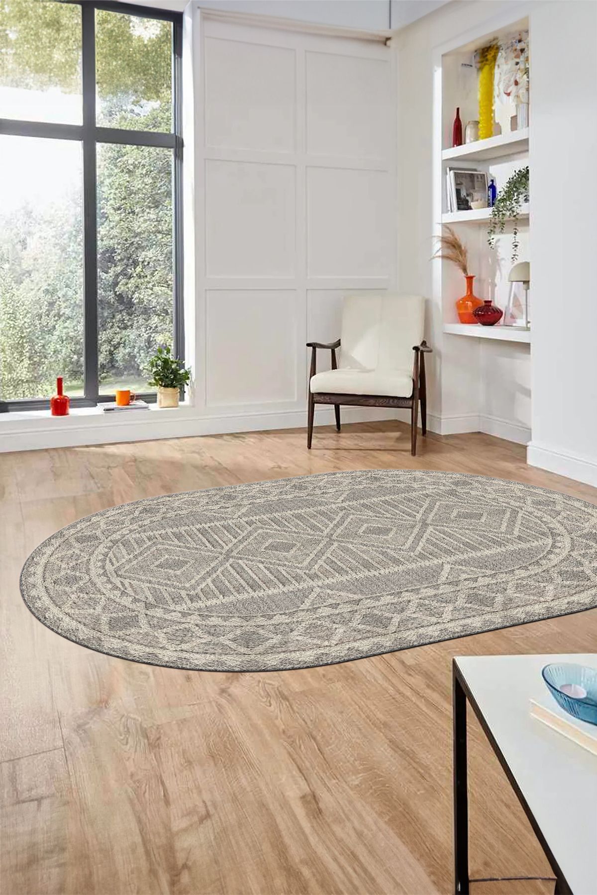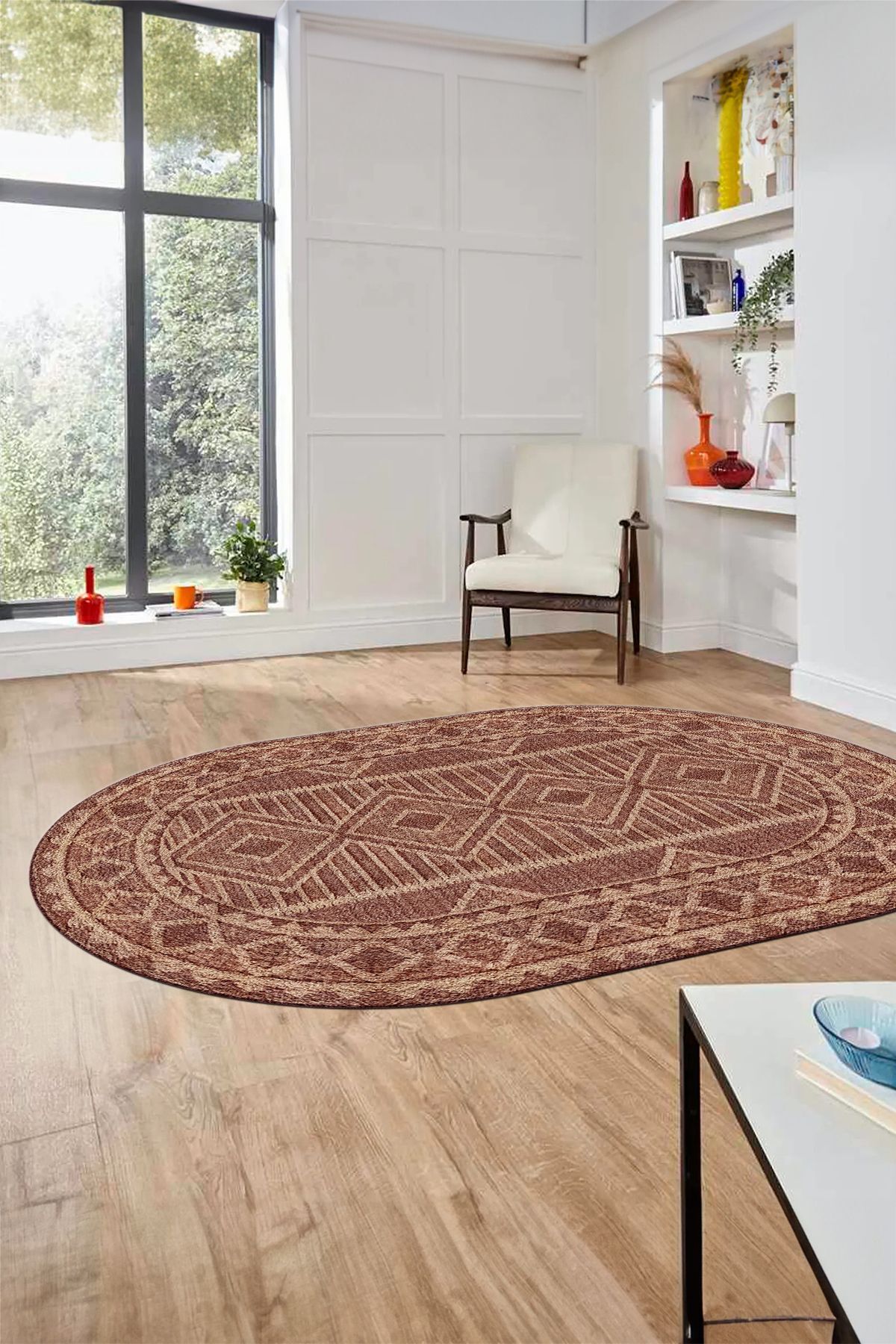Kilim Desen Baskılı Kaymaz Taban Yıkanabilir Modern Oval Yolluk Salon Halısı Kilim Desen Baskılı Kaymaz Taban Yıkanabilir Modern Oval Yolluk Salon Halısı MODERN-108 160 x 230