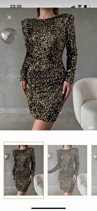 Kadın Uzun Kollu Pulpayet Kumaş Sırt Dekolteli Kısa Abiye GOLD Kadın Uzun Kollu Pulpayet Kumaş Sırt Dekolteli Kısa Abiye GOLD KA004 L