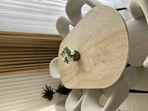 Yarım Ay Ayaklı Traverten Mermer Yemek Masası Yarım Ay Ayaklı Traverten Mermer Yemek Masası auryemekmasasi تک سایز
