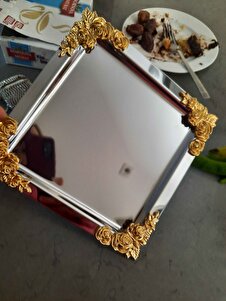 1 adet Gümüş Gold Detaylı 18/10 Çelik Kahve Sunum Tepsisi 1 adet Gümüş Gold Detaylı 18/10 Çelik Kahve Sunum Tepsisi kare تک سایز