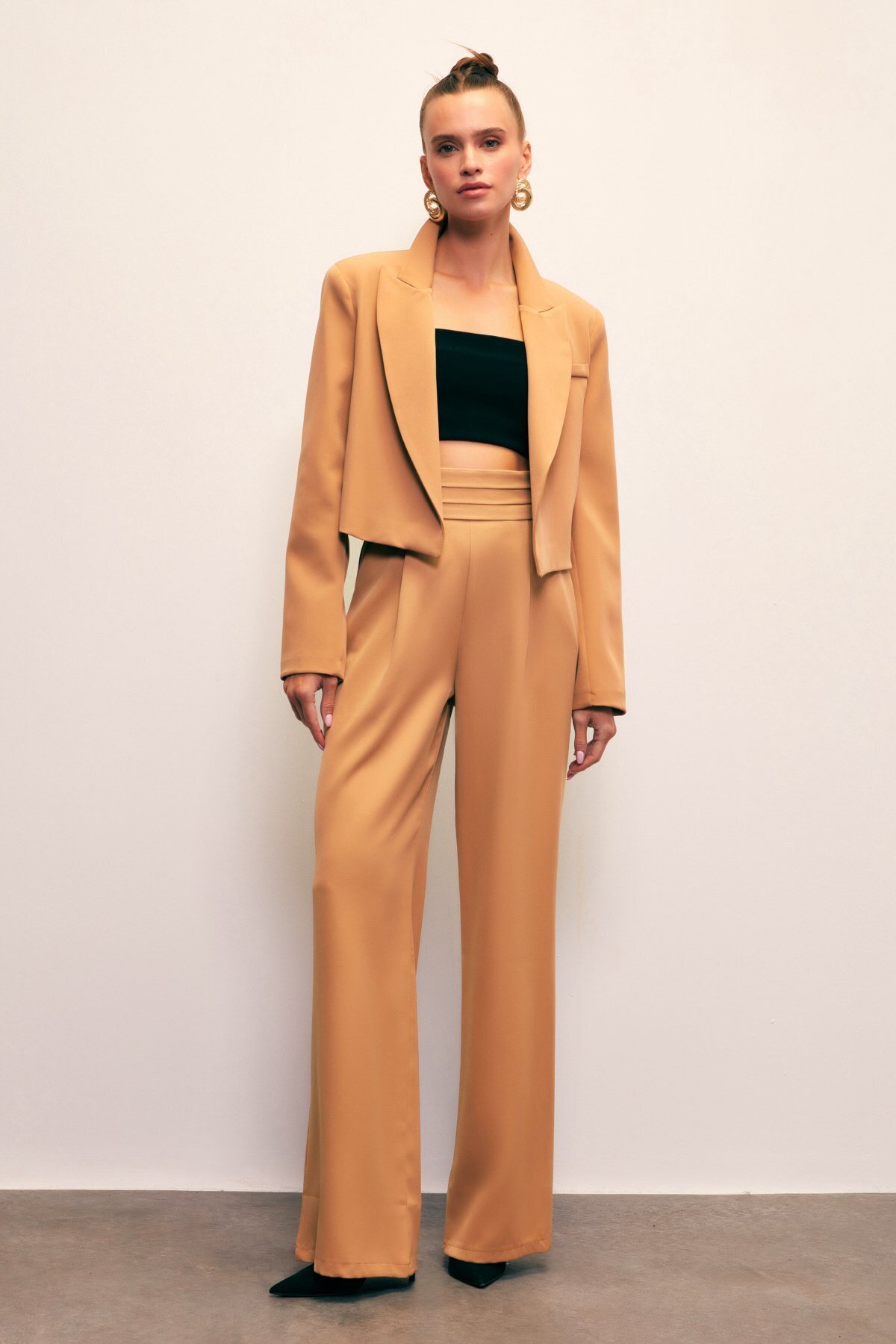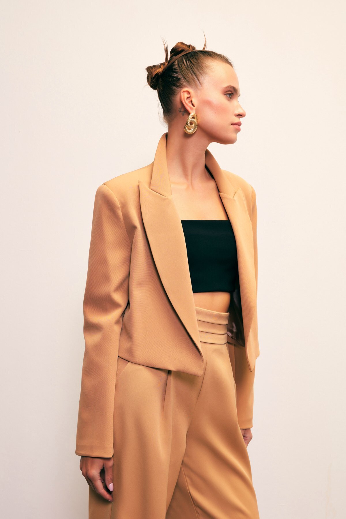 Şal Yaka Kısa Ceket - Camel Şal Yaka Kısa Ceket - Camel STN139KCE1270 42