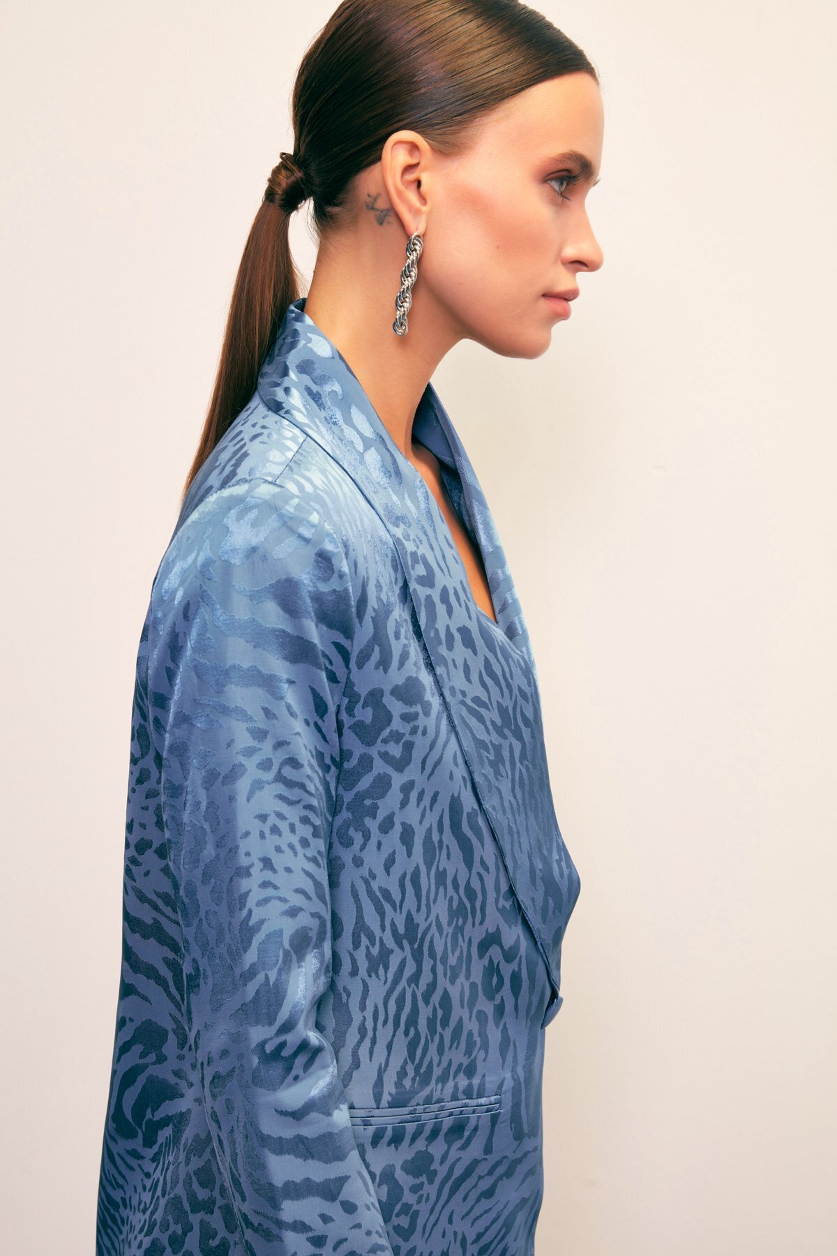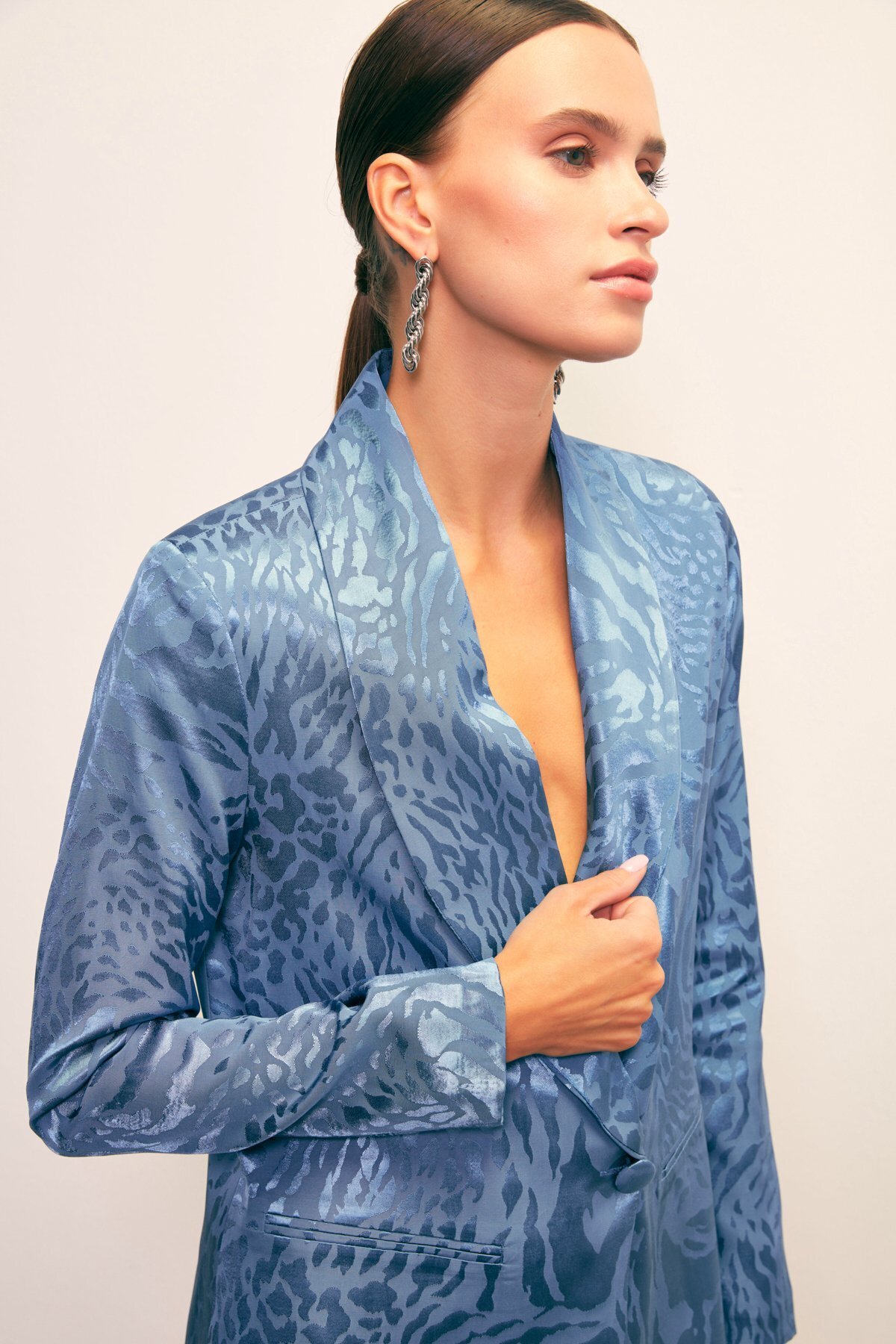 Şal Yaka Desenli Ceket - İNDİGO Şal Yaka Desenli Ceket - İNDİGO STN139KCE1227 42