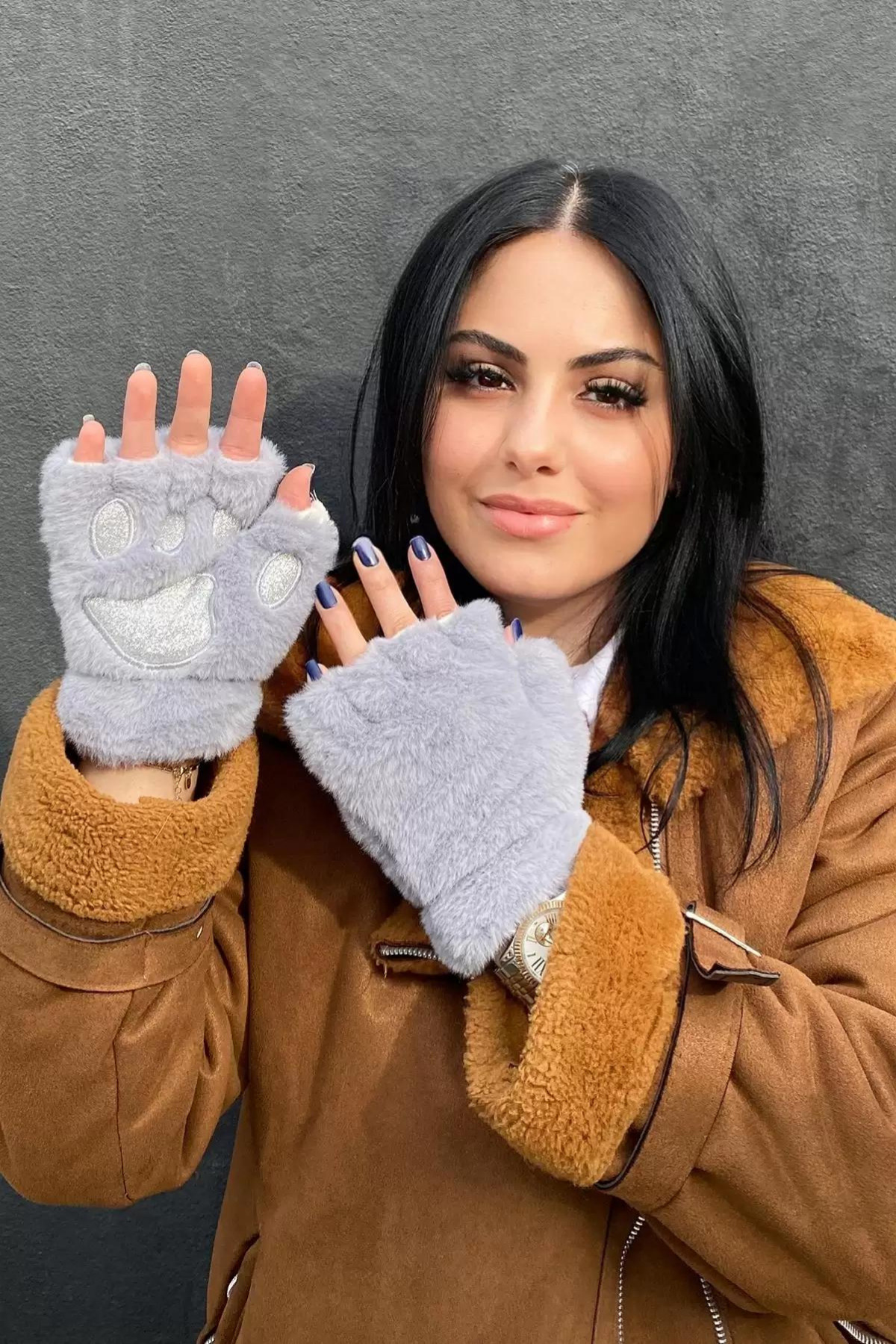 Simli Peluş Yarım Parmaklı Pati Eldiven Simli Peluş Yarım Parmaklı Pati Eldiven RMC0149 تک سایز