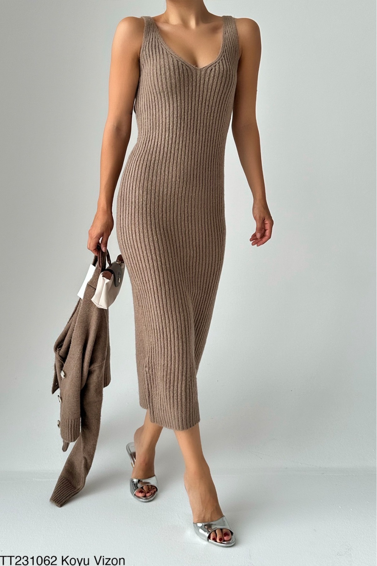 Kadın Vizon Askılı Elbise-hırka Ikili Triko Takım Kadın Vizon Askılı Elbise-hırka Ikili Triko Takım TT231062 Standart